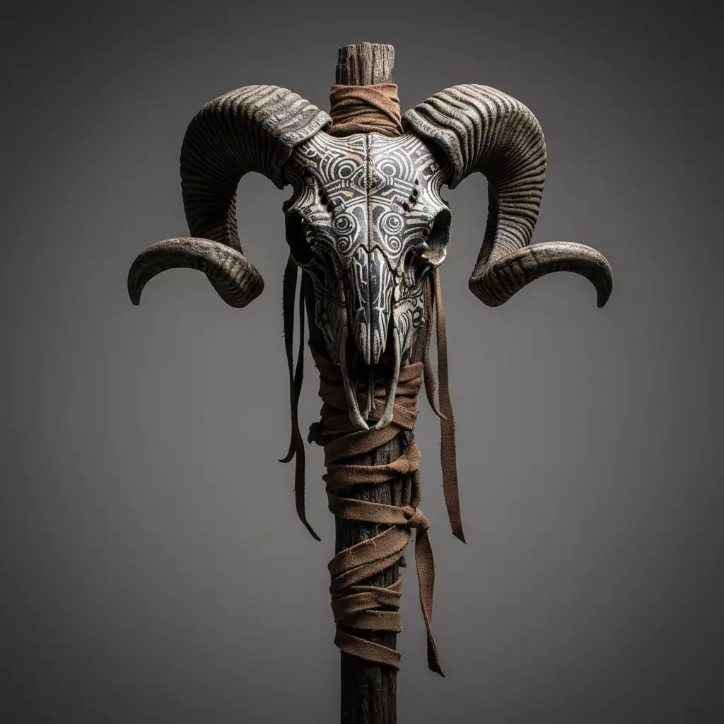 The Tribal Ram Skull Totem is a striking 3D prop designed to evoke ancient rites, primal mysticism, and the raw symbolism of forgotten cultures. Featuring a beautifully sculpted ram skull with intricate carvings etched into the bone, this totem carries an air of mythic reverence and ominous warning. The skull’s sweeping horns frame its detailed structure, creating a powerful silhouette that immediately draws attention in any scene.