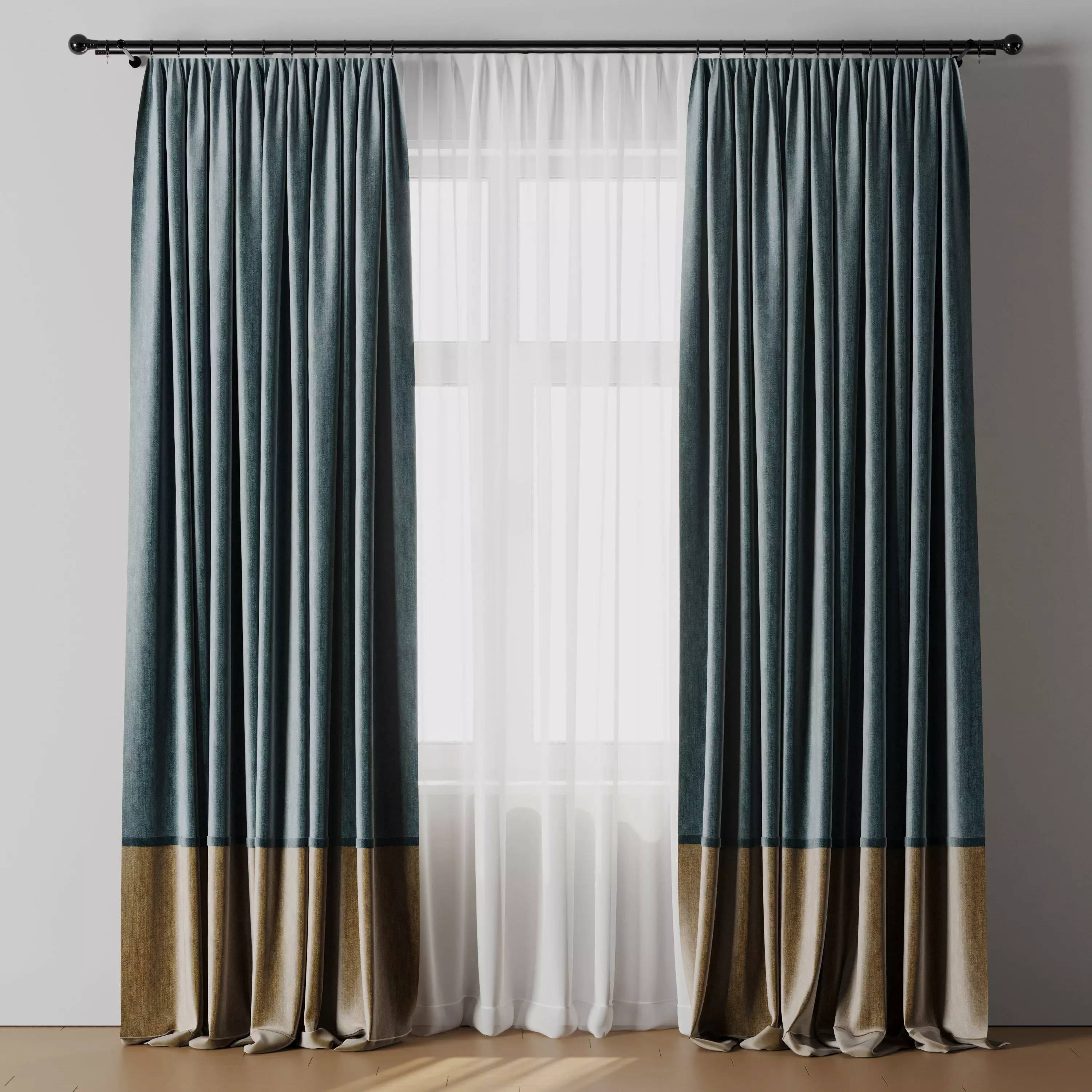 Rod Curtains with Blue Curtains 21 HBH Low-poly 3D model