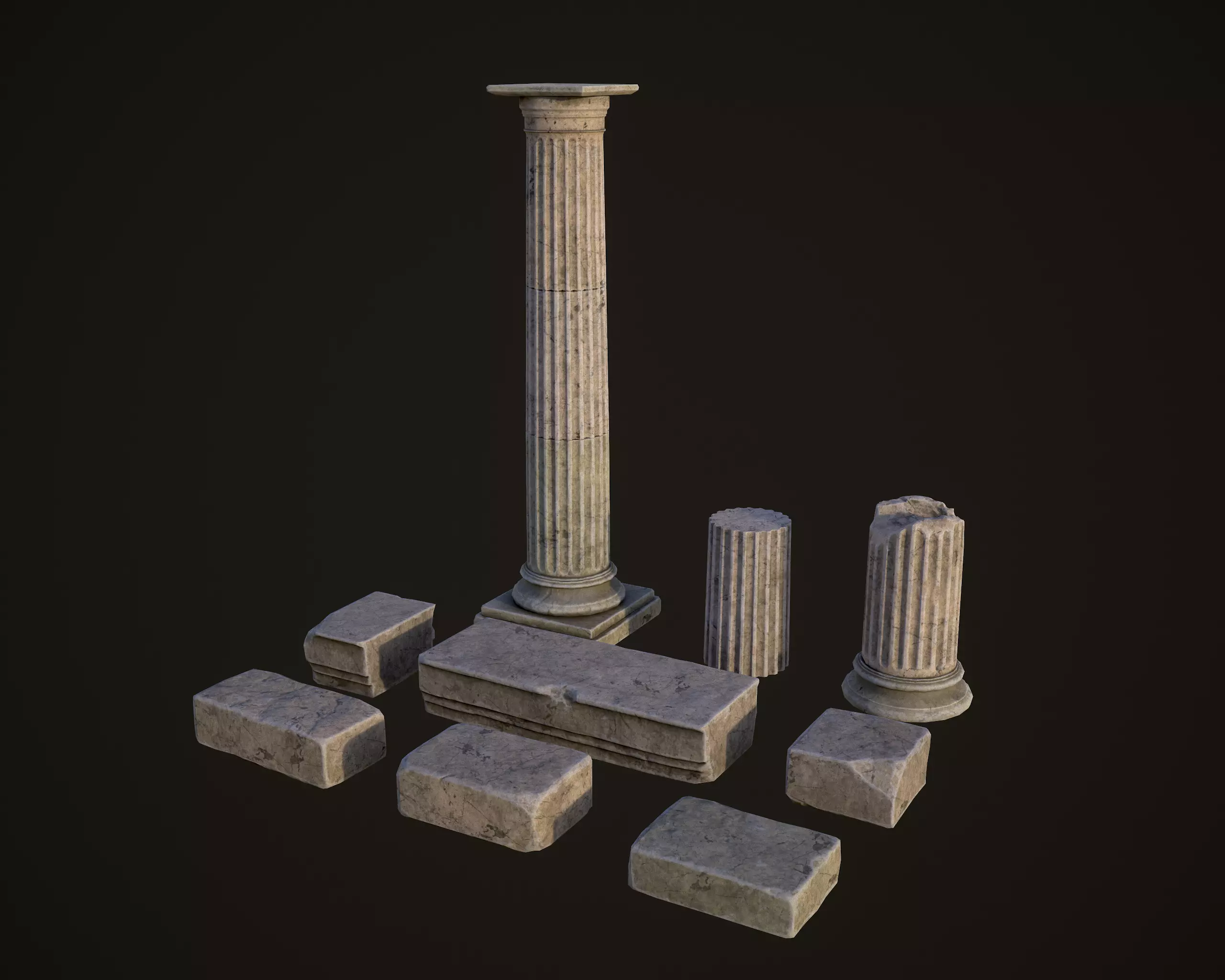This is Game Ready Columns and bricks with a high quality ( 2 Old Column / 1 Broken Column / 5 Broken bricks ) .Created using Maya and Zbrush. Textured using Substance Painter