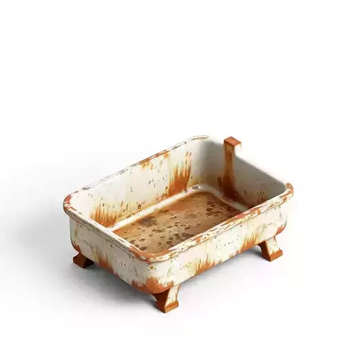This meticulously crafted 3D model presents a distressed, rusty enamel tub, perfectly suited for adding a touch of vintage charm or industrial decay to your digital scenes. Its unique character, defined by extensive rust and chipped paint textures, makes it an ideal asset for a variety of applications. This versatile prop can be utilized as a planter in garden visualizations, a dilapidated fixture in post-apocalyptic or abandoned environments, or a decorative element in rustic architectural renderings. The model is optimized for both real-time applications like game development, augmented reality (AR), and virtual reality (VR) experiences, as well as high-quality static renderings for architectural visualization and digital art projects. It features clean topology, ensuring smooth deformations if needed, and is fully UV unwrapped for optimal texture mapping. PBR (Physically Based Rendering) textures are included to deliver realistic surface properties and lighting interaction, capturing the intricate details of the weathered enamel and corroded metal. Supported file formats include GLB, OBJ, FBX, USD, DAE, STL, ABC, and PLY, providing maximum compatibility across different 3D software and engines. This model is ready to be dropped into your scene, enhancing realism and atmosphere with its authentic, aged aesthetic.