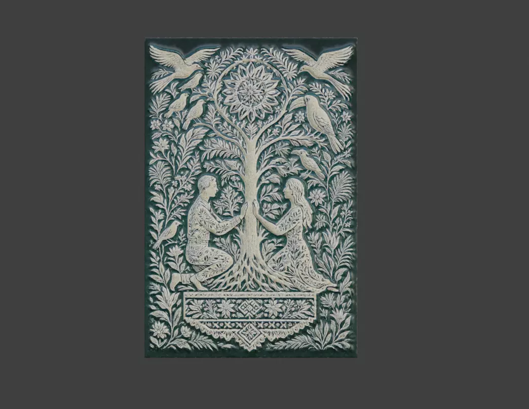 The Sacred Tree of Life Relief 3D Model is an intricately designed decorative wall asset inspired by ancient mythology, spiritual symbolism, and traditional ornamental art. This model depicts a richly detailed scene centered around the Tree of Life, a timeless symbol representing creation, balance, connection, and the continuity between nature, humanity, and the divine.