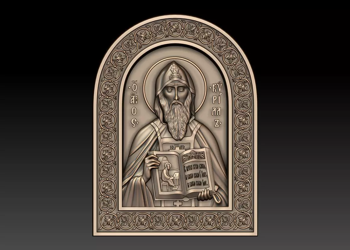 3d model Orthodox icon Saint Cyril Equal of the Apostles, Teacher of the Slavs. For milling on CNC machines. This model is ONLY for CNC, it is NOT for 3d printing. Can be used in the production of souvenirs, furniture, jewelry. Files in stl format, for import to artcam, rhinoceros, 3ds max, etc. You can scale the model to any size you need.