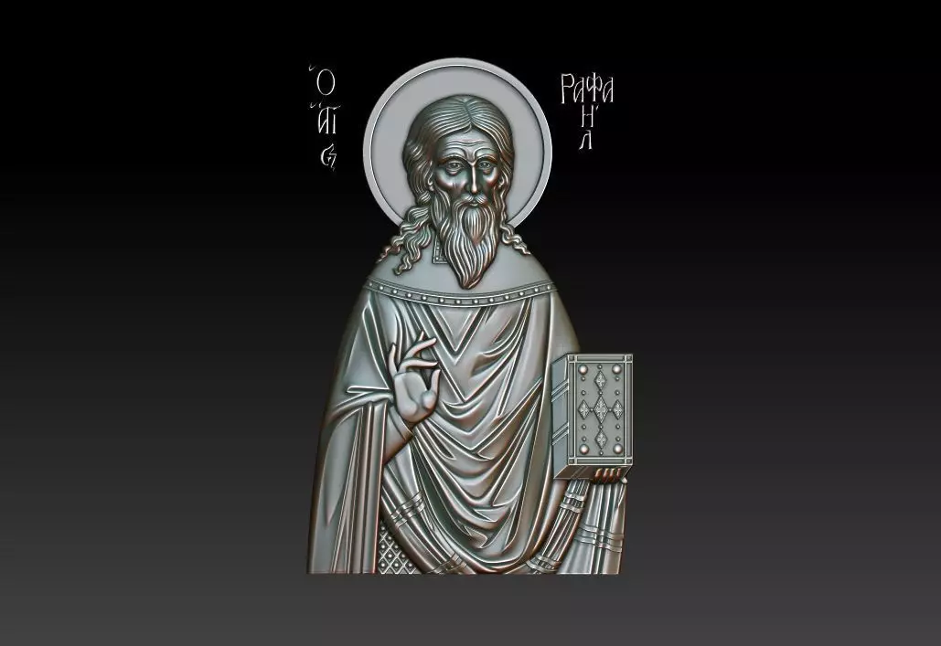 3d model Saint Raphael. For milling on CNC machines. Can be used in the production of souvenirs, furniture, jewelry. Files in stl format, for import to artcam, rhinoceros, 3ds max, etc. You can scale the model to any size you need.
