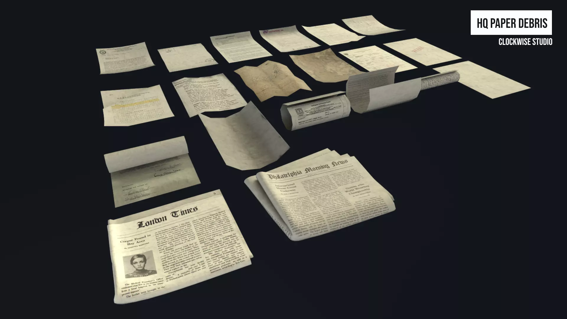 Scattered Paper Debris HQ and Newspaper Low-poly 3D model