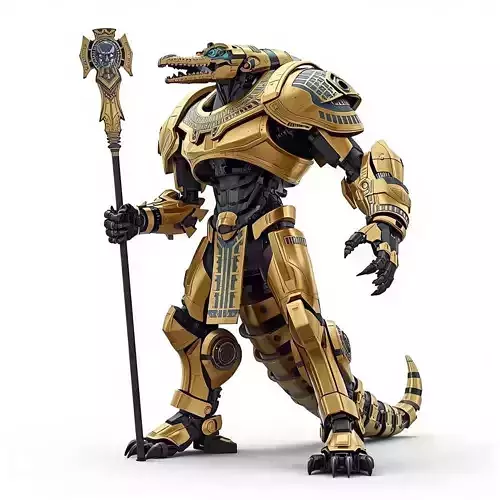 Unleash the raw power of the Nile with this Sci-Fi Mecha-Sobek Statue, a hulking futuristic interpretation of the Ancient Egyptian Crocodile Deity. Built like a walking tank, this 3D asset features heavy plating, a robotic crocodile head, and a massive energy staff, making it the ultimate guardian for your sci-fi environments.