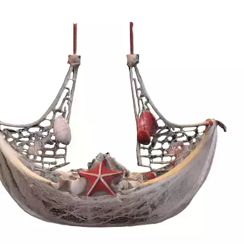 This unique 3D model features a stylized hammock crafted with a net-like structure, adorned with starfish, seashells, and nautical elements. Designed with a handcrafted, fantasy-inspired look, it's ideal for creating immersive beach or pirate-themed game environments.