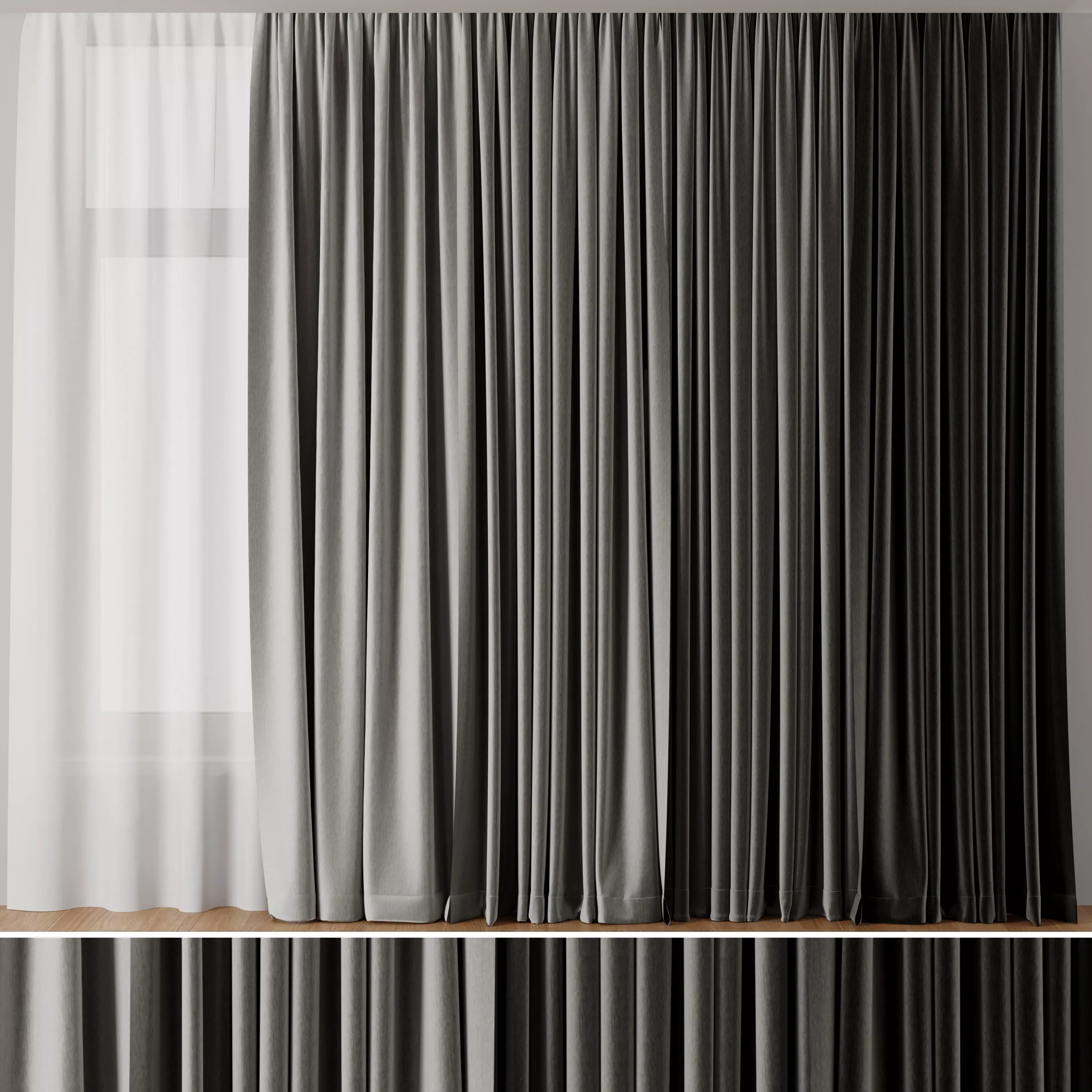 Set of soft grey silk curtains with wrinkles collections 21 HBH Low-poly 3D model
