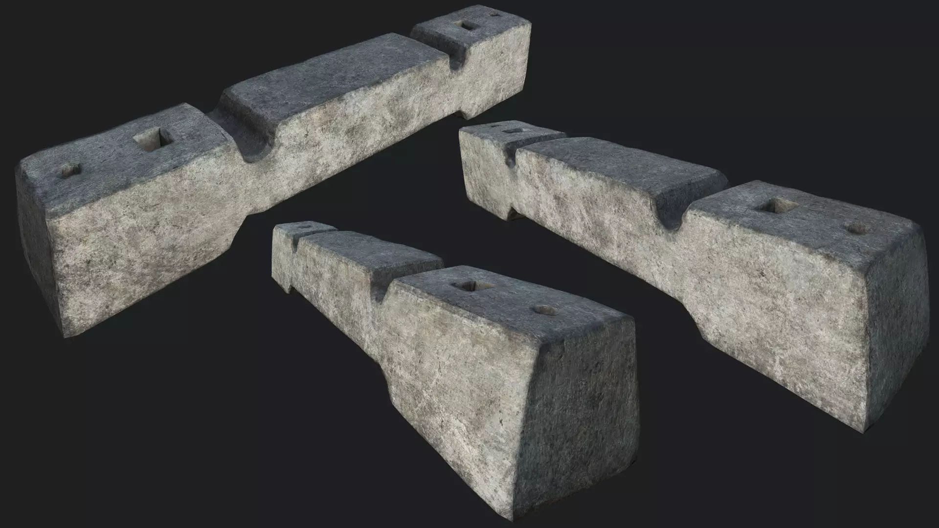 Detailed Low Poly Small Concrete Barricade with High-Quality PBR Texturing.