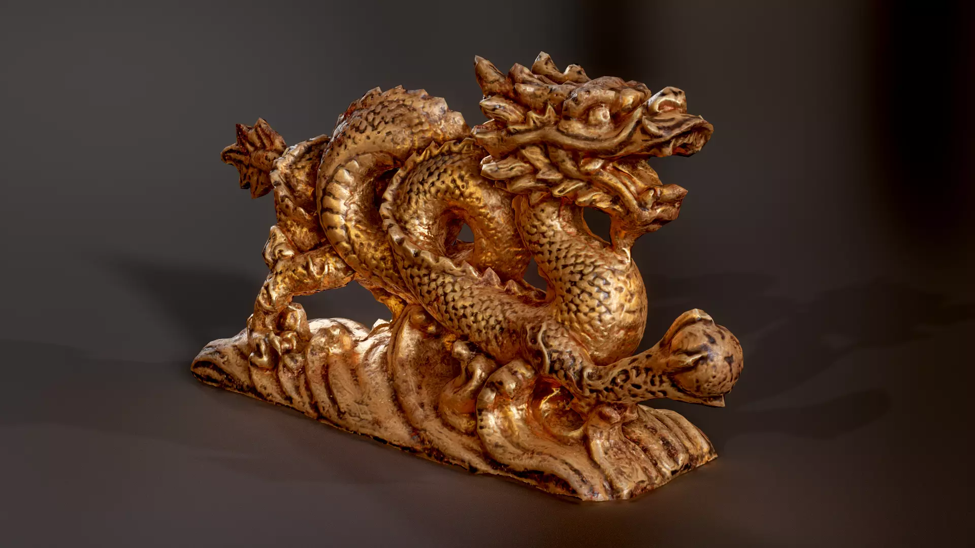 Low poly, PBR, game-ready, small golden dragon figure model. Screenhots are taken in Marmoset Toolbag.