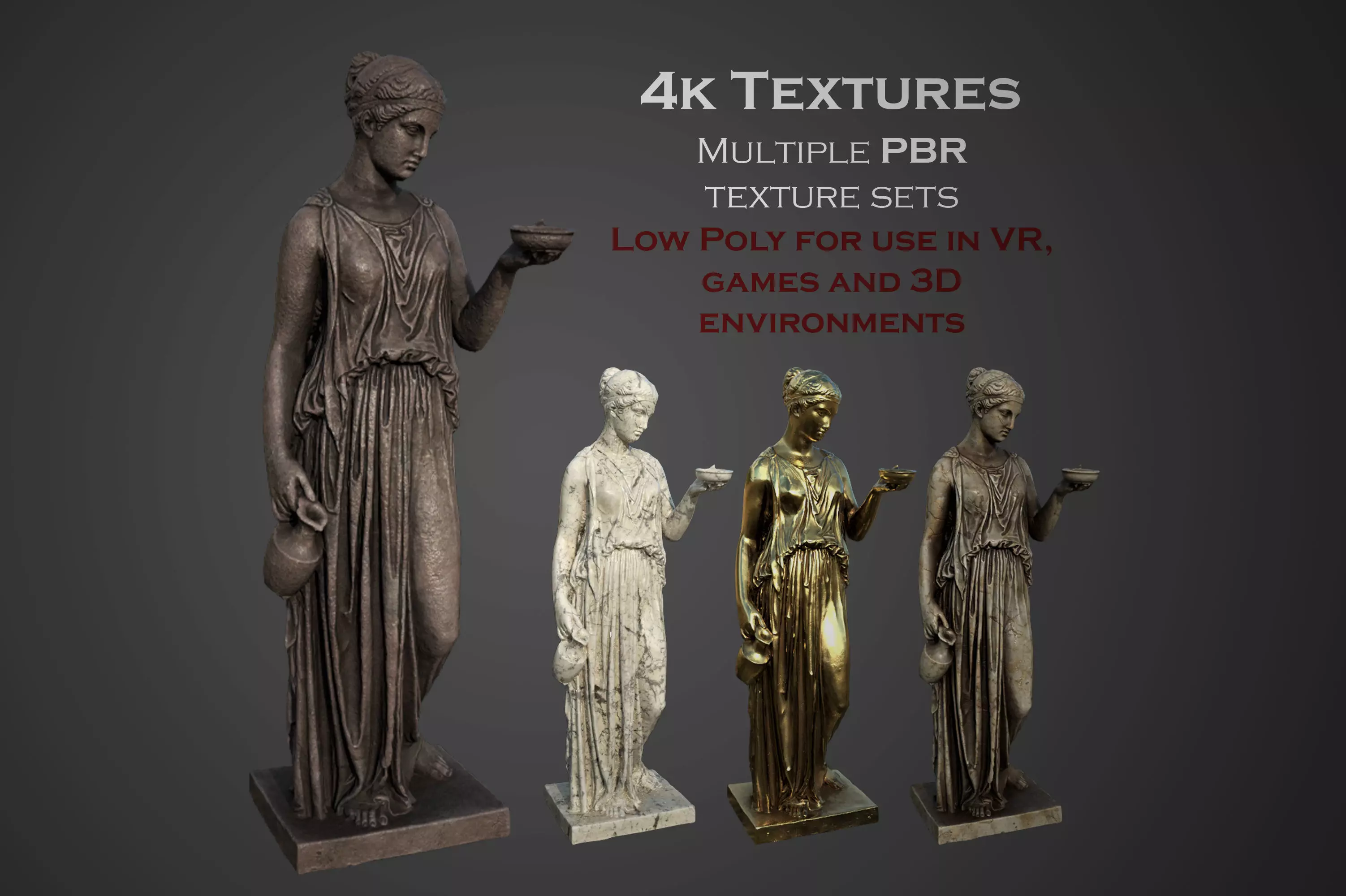 low poly model of the statue of Hebe Goddess of youth for use in Architectural visualization, AR, and game engines