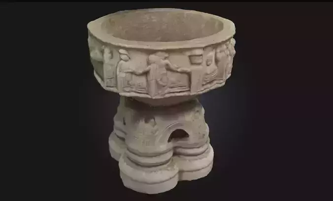 Stone Baptismal Font Sacred Symbolism in Timeless Stone 3D model