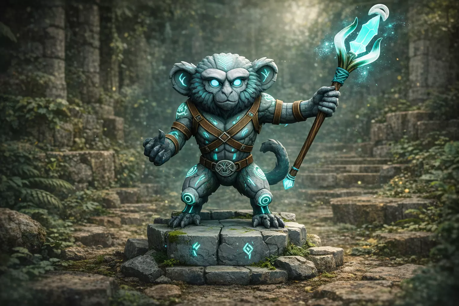 Stone Guardian Statue Pack Stylized Fantasy marmosetThe Stone Guardian Statue Pack – Fantasy Edition is a high-quality collection of stylized mystical statues designed for fantasy environments. This pack features powerful guardian creatures sculpted in stone, infused with glowing magical runes and subtle ancient details.Included in the collection is a Mystic Monkey Shaman Guardian, holding an enchanted staff with a crystal tip. The statue is carved with tribal symbols, glowing energy lines, and layered stone armor details, making it perfect for temples, jungle ruins, ancient civilizations, RPG maps, and magical worlds.Each statue is designed with a strong silhouette, clean topology, and optimized structure for both games and cinematic renders.This pack is ideal for adding storytelling, atmosphere, and visual impact to your fantasy environments.