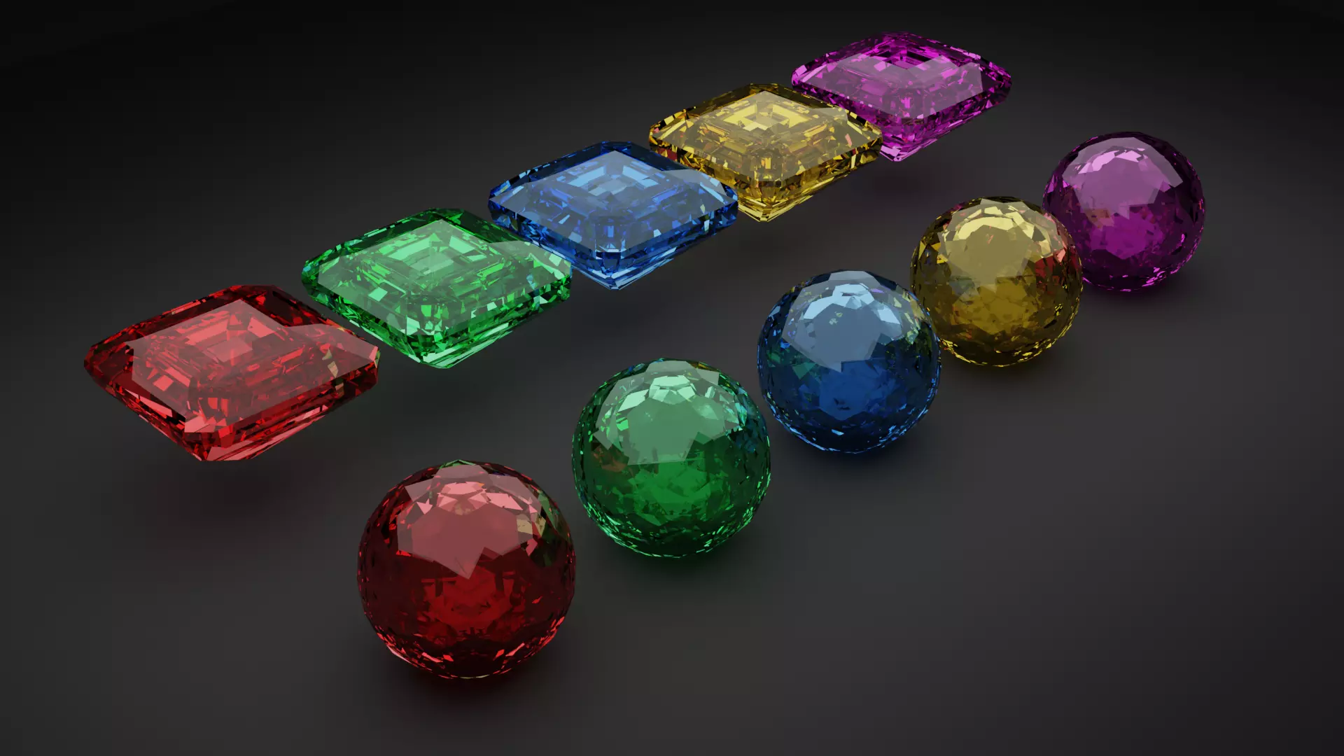 Prepare to be captivated by our meticulously crafted set of eight exquisite diamonds, created with precision and care in Blender. These stunning gems are a kaleidoscope of colors, featuring radiant red, vibrant yellow, deep blue, soft pink, and lush green hues. Each diamond is a unique masterpiece, combining square and spherical shapes to showcase the unparalleled artistry behind their creation.