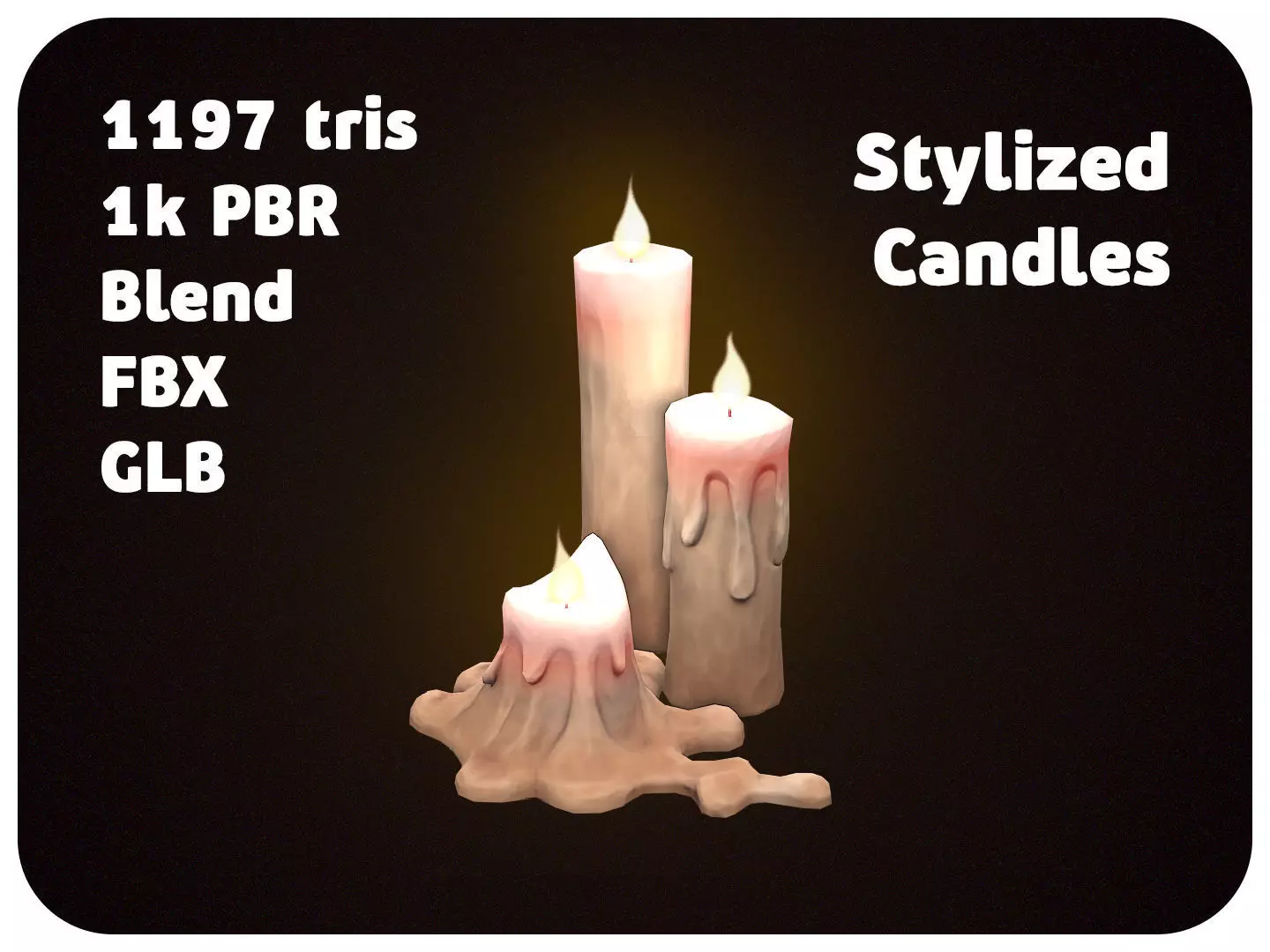 A detailed low-poly candle set created for stylized and fantasy environments.This pack includes two versions – glowing candles with warm emissive flame and unlit wax candles – ready to use in any scene.