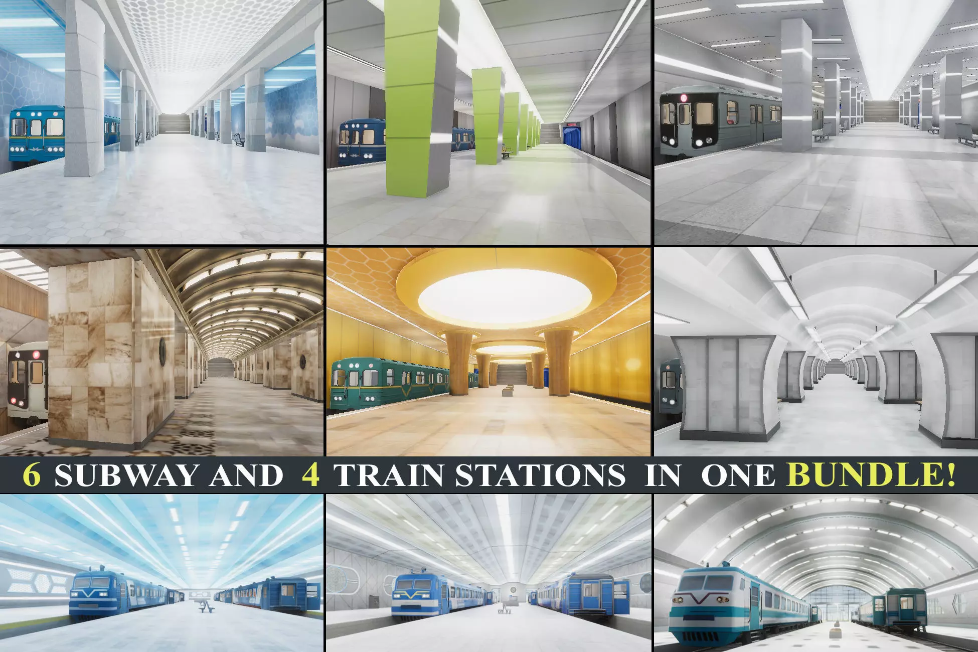 Package includes 10 scenes of Subway and Train Stations: