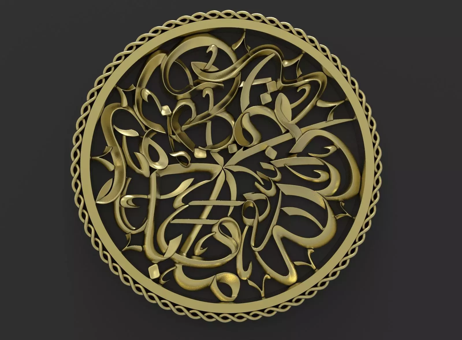 A 3d model of arabic calligraphy of surah Al-Nahl verse 53 .ready for cnc router machining .various files type .measurments : 24 *24 cm .thickness of 25 mm .