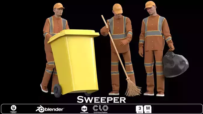 Bring realism and functionality to your digital urban environments with this Sweeper Character Collection 3D model!