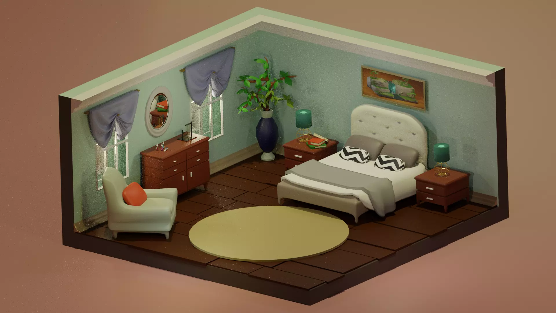 The model has material settings that define how surfaces look (color, shine, transparency, etc.).