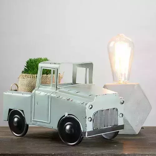 • Showcase classic Americana with this vintage-inspired teal pickup truck. This weathered and distressed piece is sure to mix in well with your farmhouse-themed decor. Measuring 7'' H x 5.5'' W x 12'' D, it offers a bit of storage in truck bed, perfect for keys, loose change, mail, or even a small plant. A great way to add charm and personality to a room, this rustic tabletop accessory is ideal for an end table, coffee table or nightstand.
