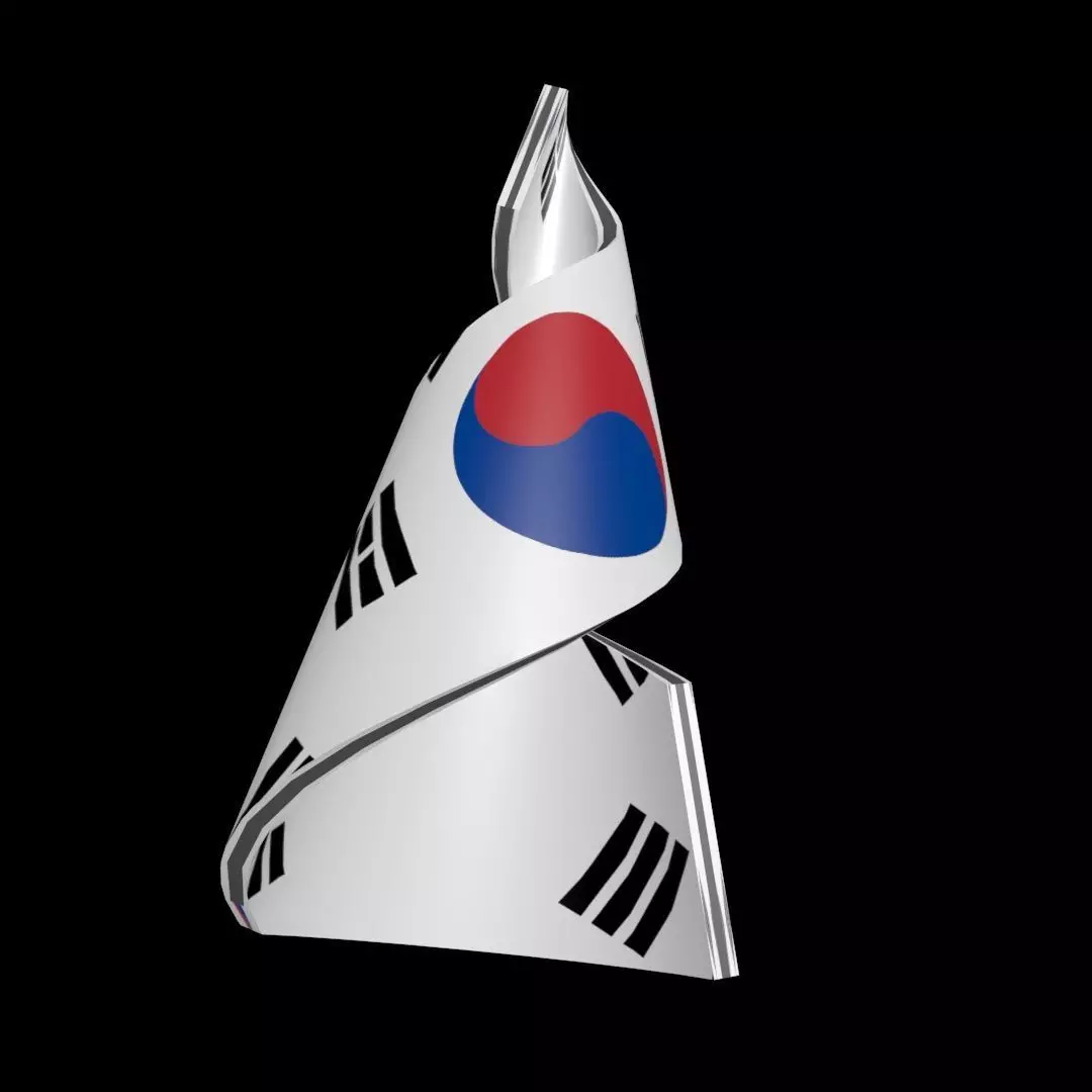 A 3D Model Of the South Korean Flag of different extensionsThe colors of the flag are red, blue, and black on a white background. The flag stands for the three components of a nation: the land (the white background), the people (the red and blue circle), and the government (the four sets of black bars or trigrams).the Republic of Korea is a country in East Asia. It constitutes the southern part of the Korean Peninsula and borders North Korea