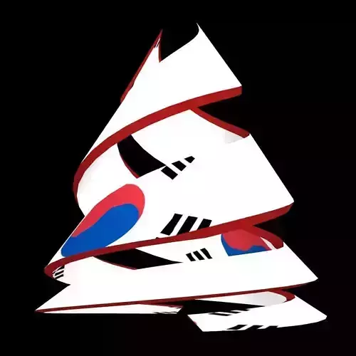 A 3D Model Of the South Korean Flag on double and single spiral structure of different extensions The colors of the flag are red, blue, and black on a white background. The flag stands for the three components of a nation: the land (the white background), the people (the red and blue circle), and the government (the four sets of black bars or trigrams). the Republic of Korea is a country in East Asia. It constitutes the southern part of the Korean Peninsula and borders North Korea