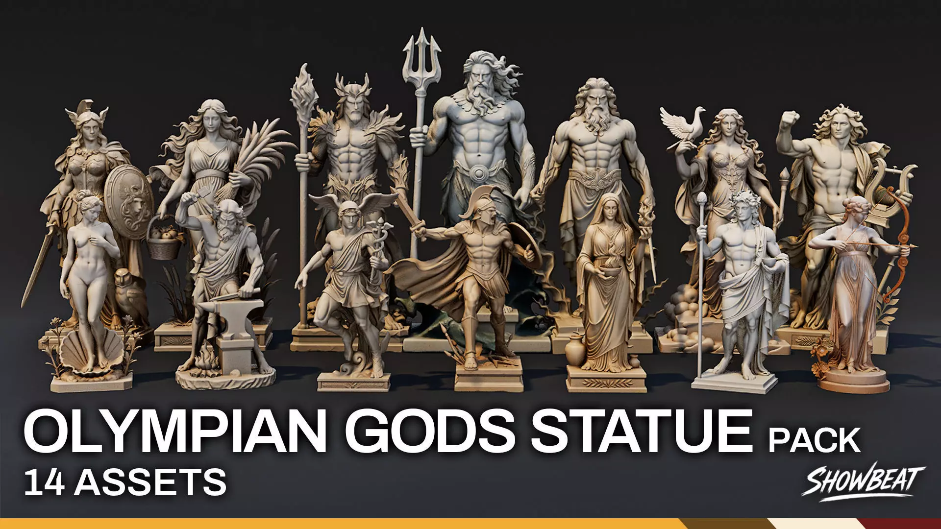 All Olympian statue models may have a thin, subtle line around the midsection or near the drapery folds. This is a minor surface boundary that occurred during the creation process, and it is barely noticeable during normal viewing or from a distance. It is not a structural problem or mesh break, and it does not affect rendering, gameplay, or general usage in any meaningful way.