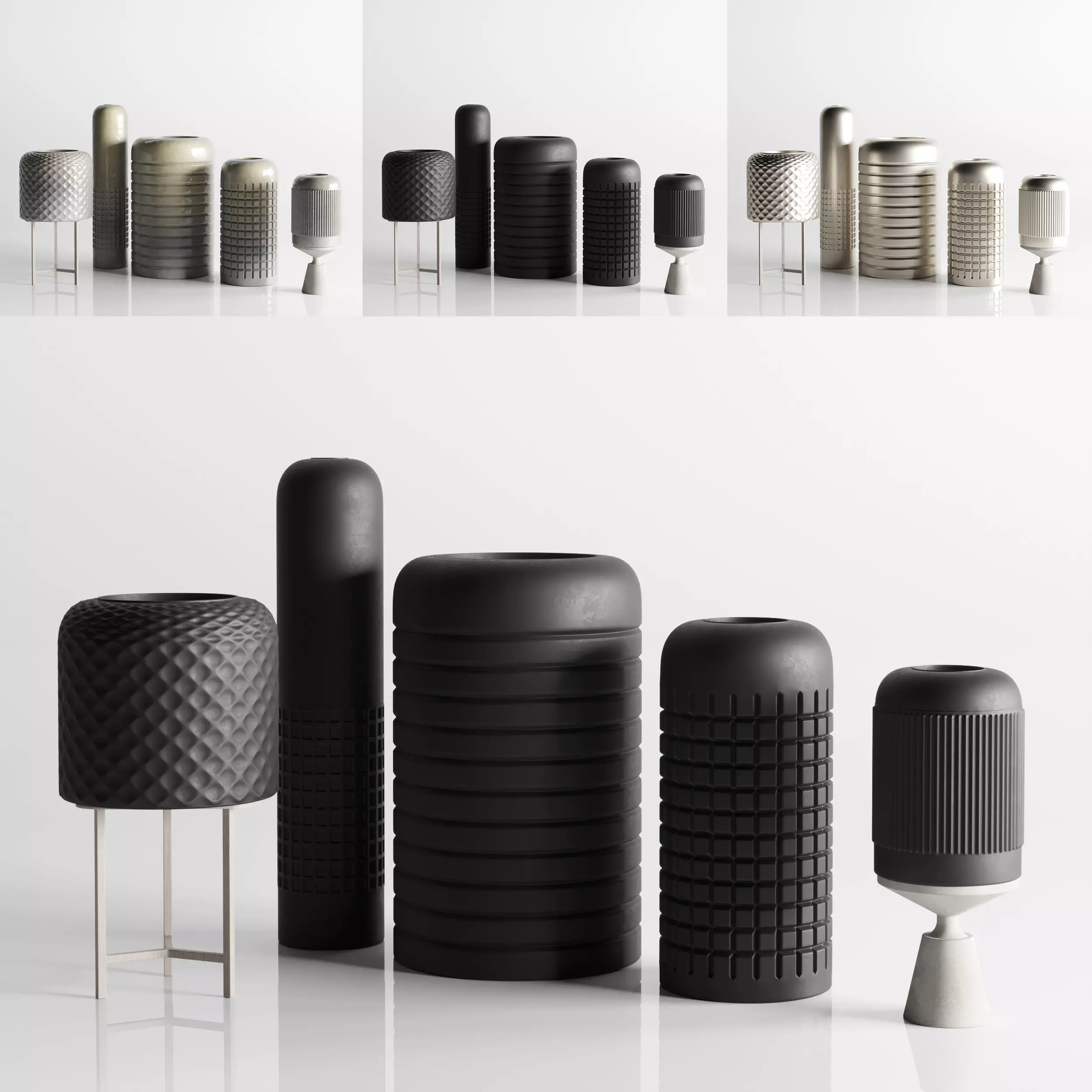 Vase Concrete metal ceramic Indoor Outdoor Set 04 3D model