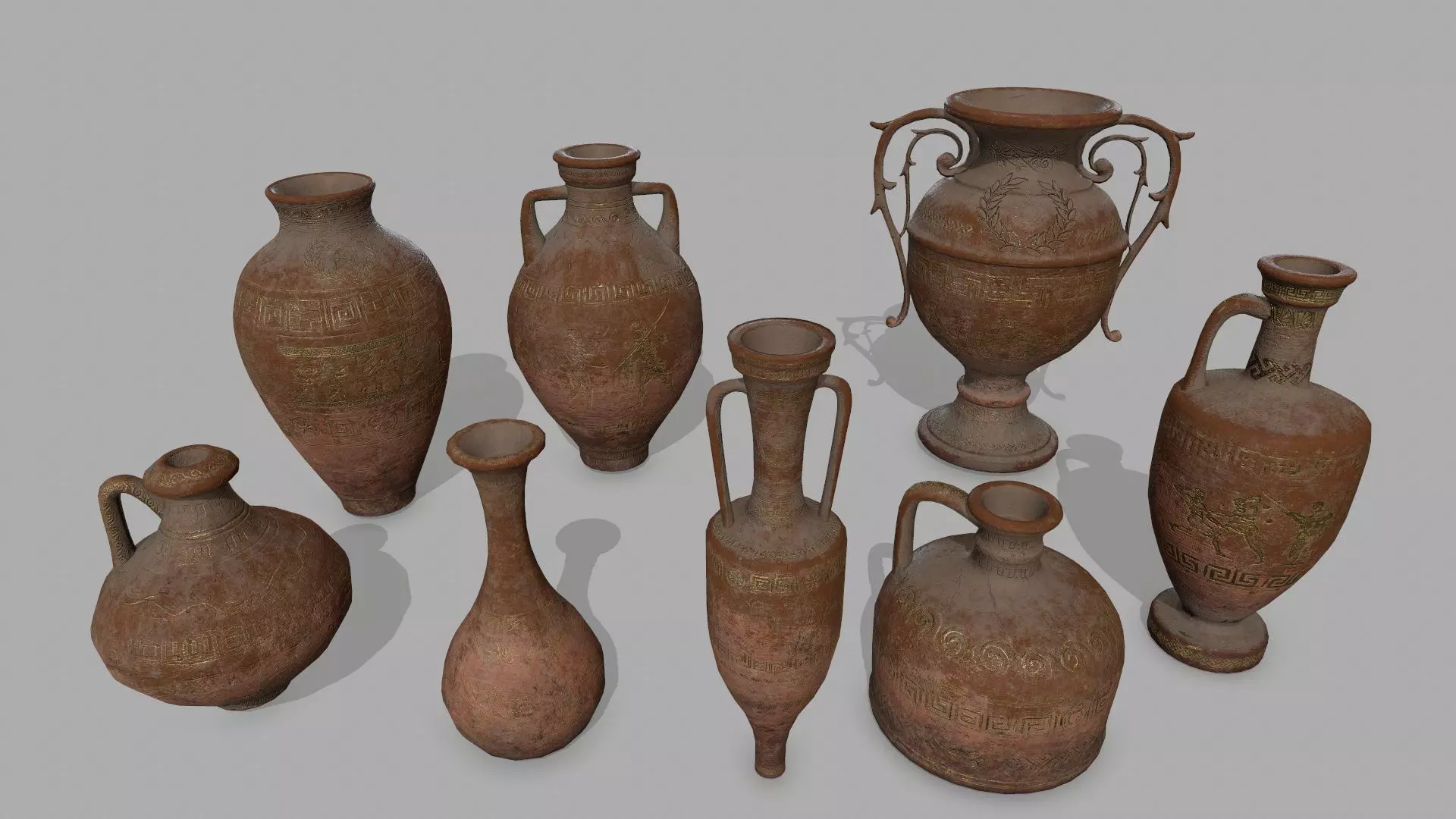 vase set ancient greek Low-poly 3D model