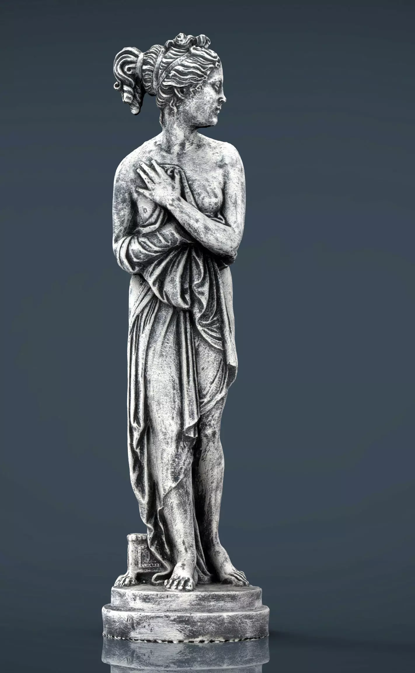 Venus Italica by Antonio Cánova: "When, in 1803, Napoleon moved the Venus de Medici to Paris, the Florentines were left without one of their most precious treasures. The artist, reluctant at first, finally agreed to his execution, however Some years of working the copy of the Venus de Medici ended up becoming the germ of Venus Italica, a new sculpture created, with appreciable differences with the ancient Florentine work Venus, surprised in his bathroom, covers part of the body with a A fabric that curls up on his right arm and falls to his feet until it seems to merge with the very base of the sculpture. The face, of an angelic beauty, is accompanied by the movement of the body, to intensify the effect of surprise and offer us Multiple points of view Author: Antonio Cánova Style: Neoclassicism (19th century) Statue displayed at the Museum of Roduccion Rep in Bilbao.