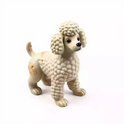This charming 3D model presents a delightful stylized poodle dog figurine, meticulously crafted with a distinct vintage or aged aesthetic. The model features intricate sculpted details mimicking a fluffy texture, complemented by subtle distressing and worn accents that add character and realism, suggesting it could be made from ceramic, porcelain, or a similar ornamental material. It is perfectly suited for a wide array of digital applications, including enhancing interior design visualizations, populating virtual home environments, or serving as a decorative element in architectural renders. Digital artists can leverage this model for nostalgic scenes, collectible displays, or as a unique focal point in creative compositions. Game developers might find it useful as a unique environmental prop for themed levels, while its detailed design also makes it an excellent candidate for high-quality static renders and digital art projects requiring a touch of antique charm. The model is prepared with clean topology and is ready for subdivision to achieve even finer detail, ensuring versatility across different use cases. It comes fully UV unwrapped and includes high-resolution PBR textures to deliver realistic material properties and surface imperfections. Supported file formats include GLB, OBJ, STL, FBX, DAE, USD, PLY, and ABC, making it widely compatible with major 3D software and engines. This model is optimized for both static renderings, where its fine details can truly shine, and can be adapted for real-time applications such as augmented reality (AR) or virtual reality (VR) experiences.