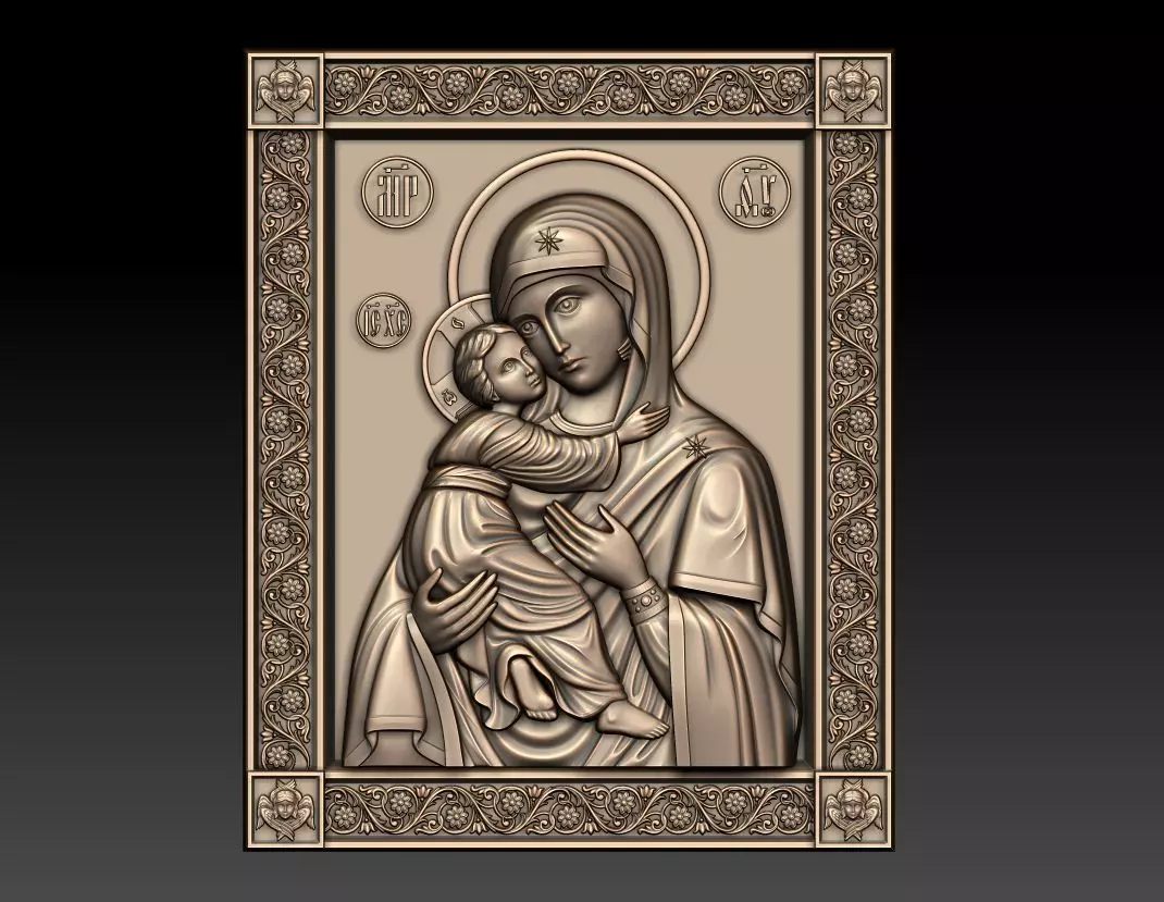 3d model Orthodox icon Vladimir Icon of the Mother of God(Theotokos of Vladimir, Icon of the Mother of God of Vladimir) . For milling on CNC machines. This model is ONLY for cnc, it is NOT for 3d printing. Can be used in the production of souvenirs, furniture, jewelry. Files in stl format, for import to artcam, rhinoceros, 3ds max, etc. You can scale the model to any size you need.
