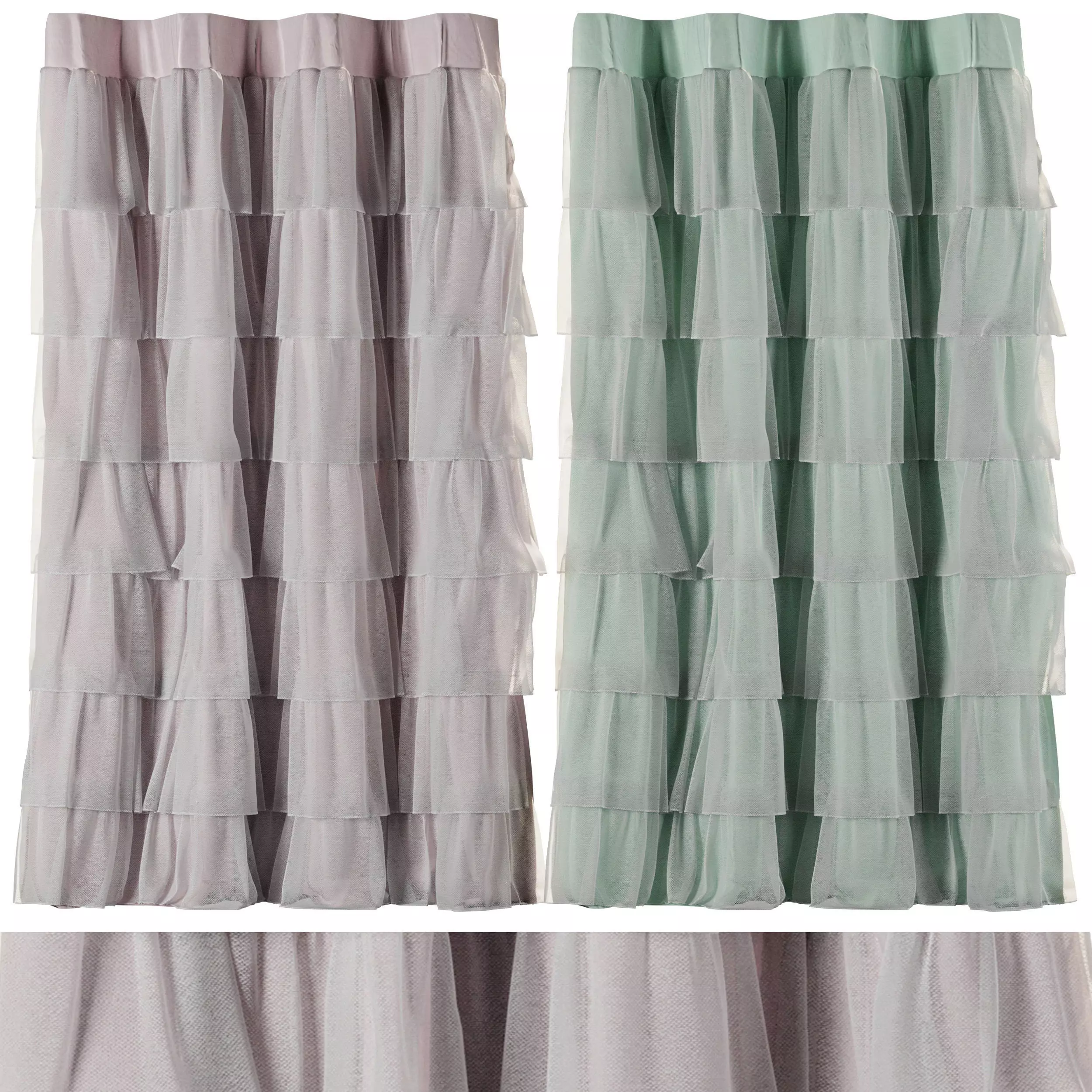 Volens green - pink Ruffle Shower Curtain 001 Low-poly 3D model