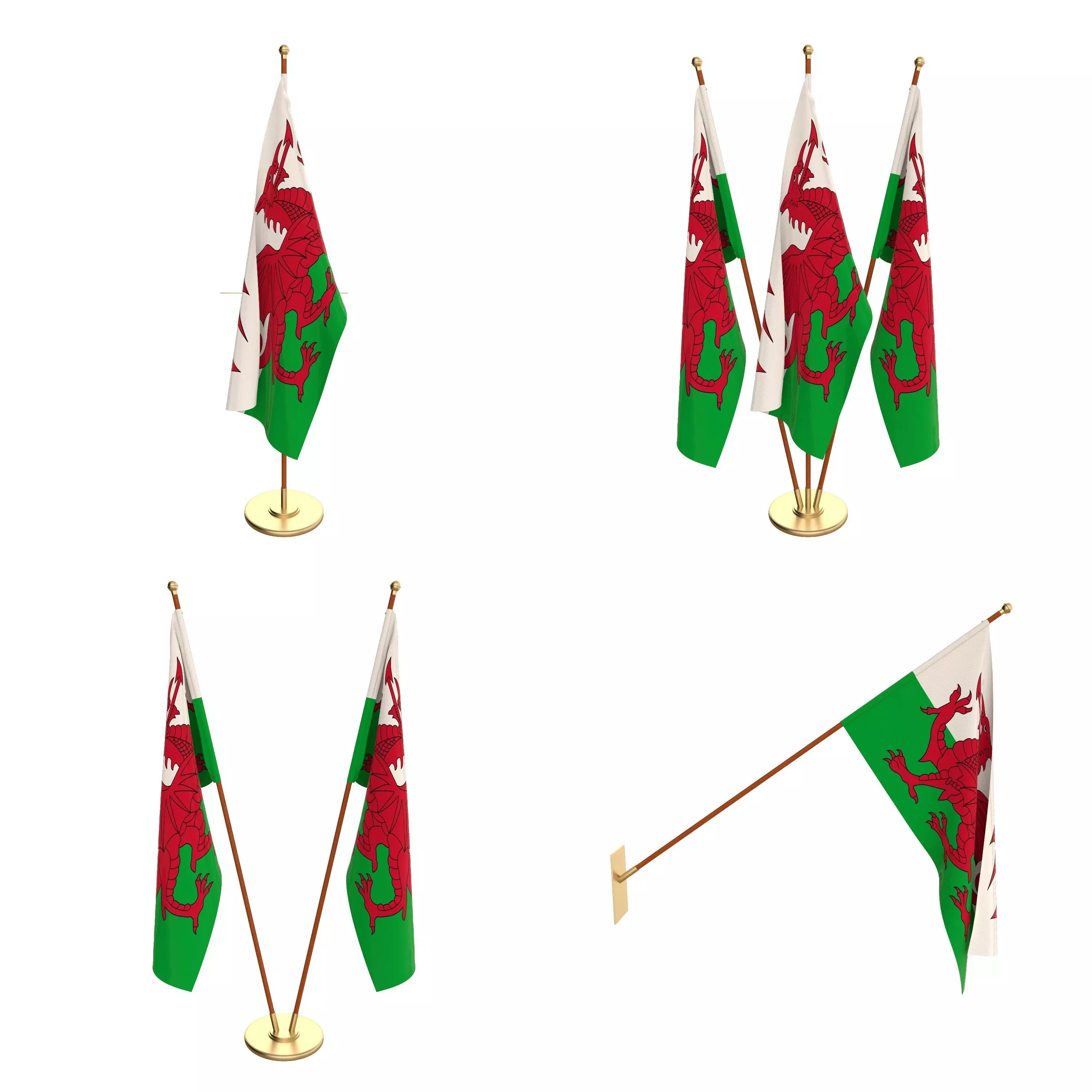 Set of four flag setups(exterior flag and three different office flags).