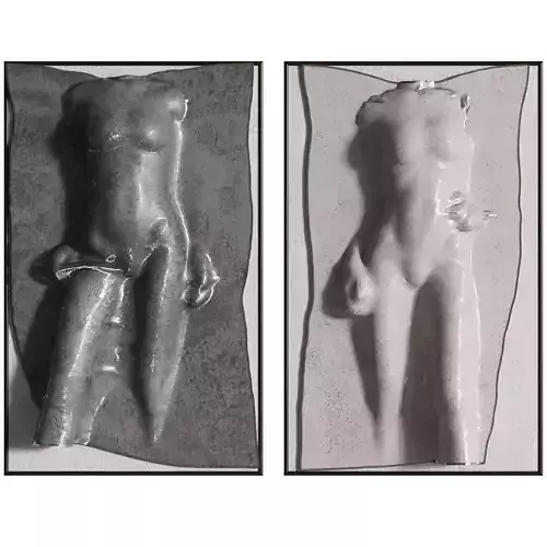 A wall panel imitating a female silhouette using folds of fabric, made in two colors. The model will fit perfectly into many modern interiors.