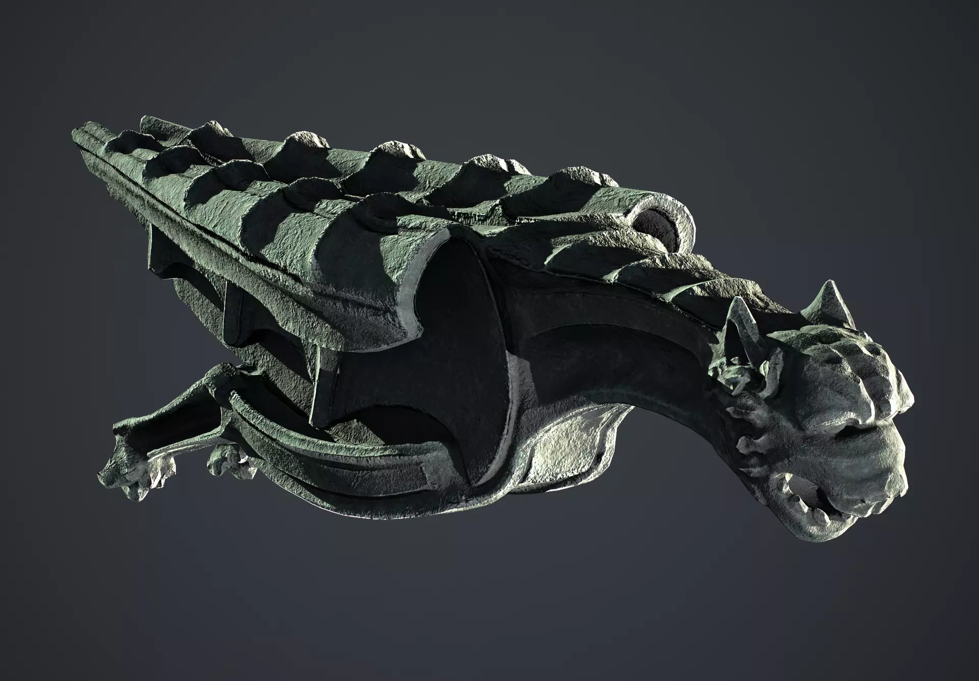 Original design of a gothic-style waterspout gargoyle. Based on real-life references, this model was created using: