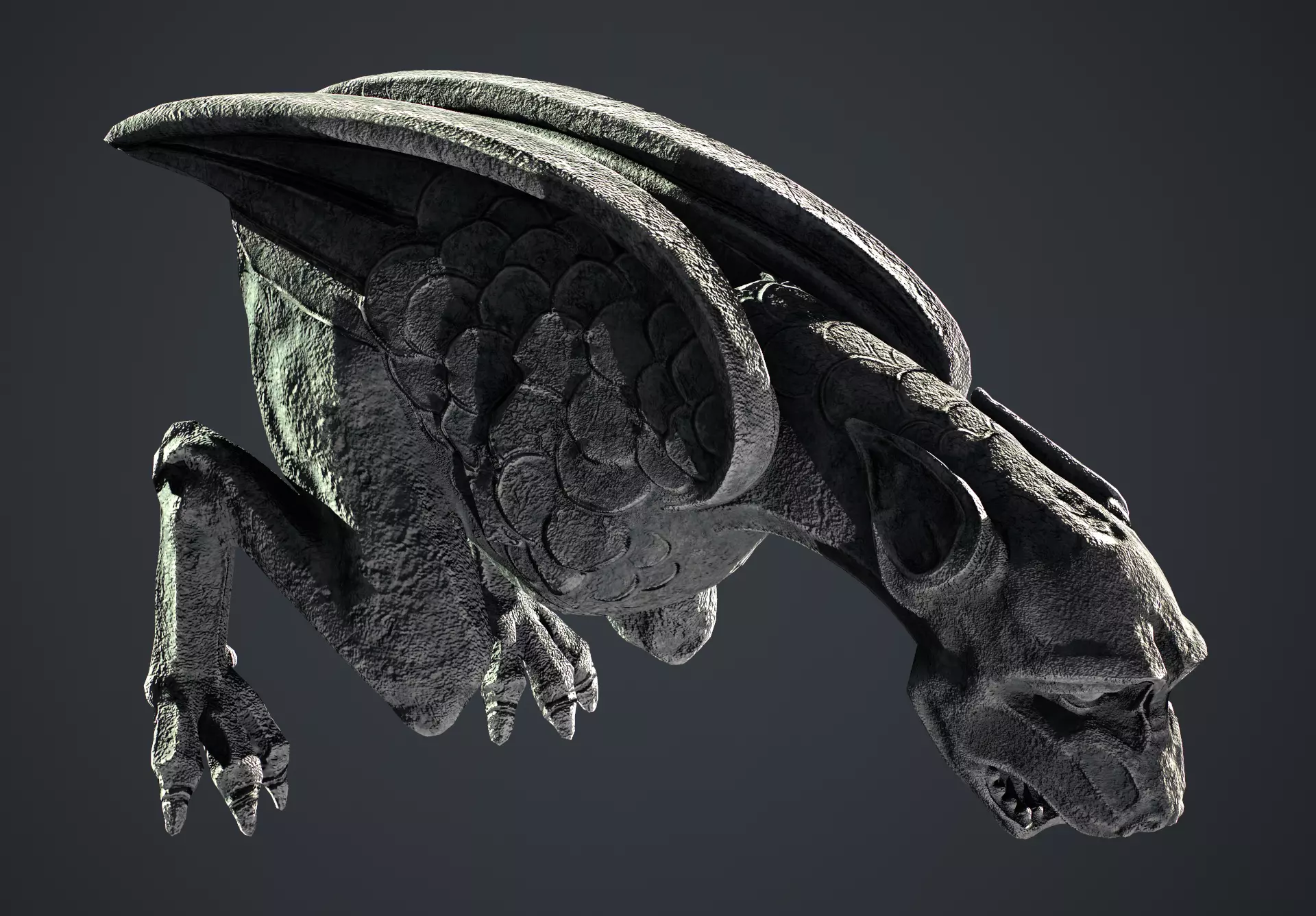 Original design of a gothic-style waterspout gargoyle. Based on real-life references, this model was created using: