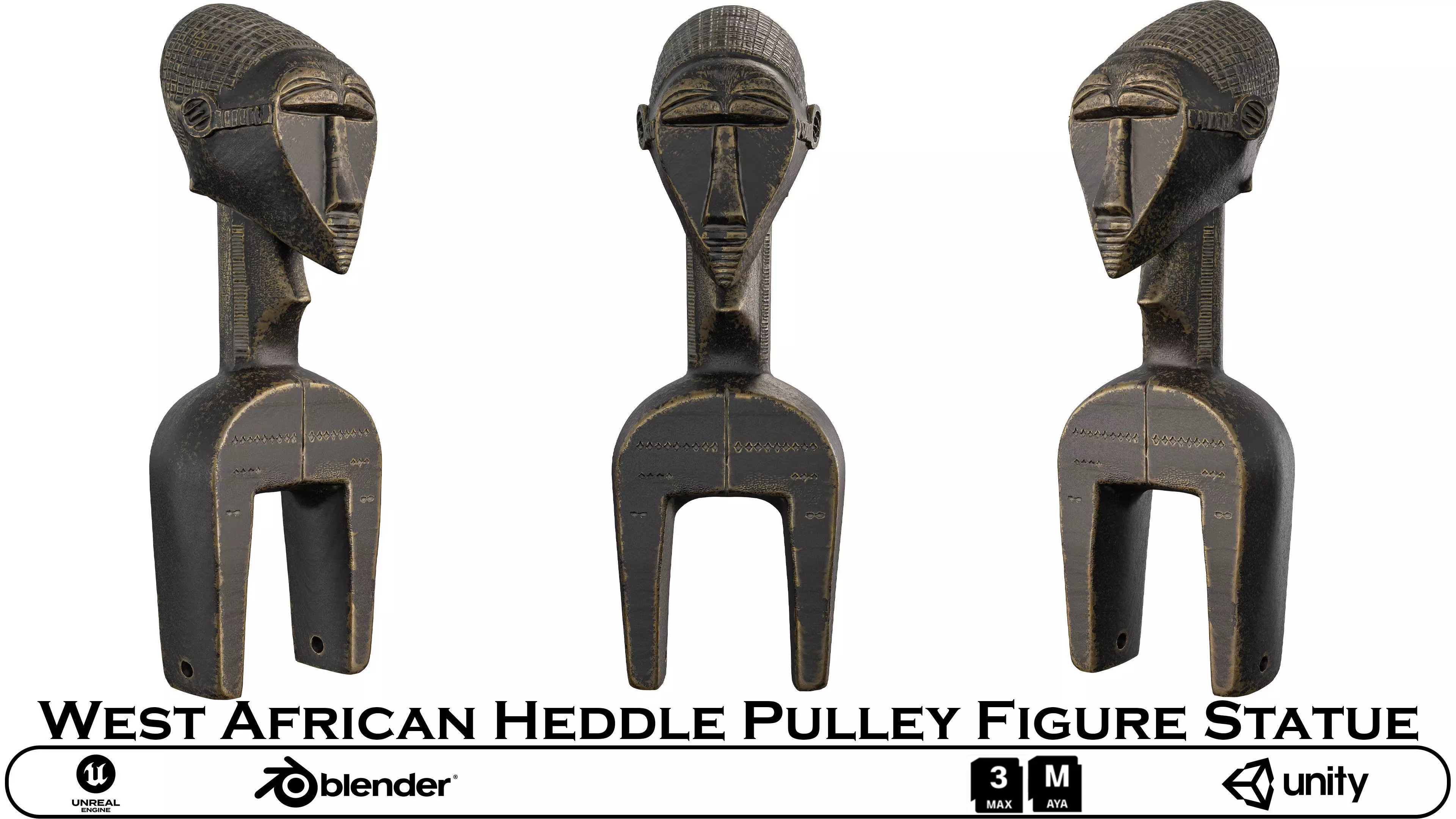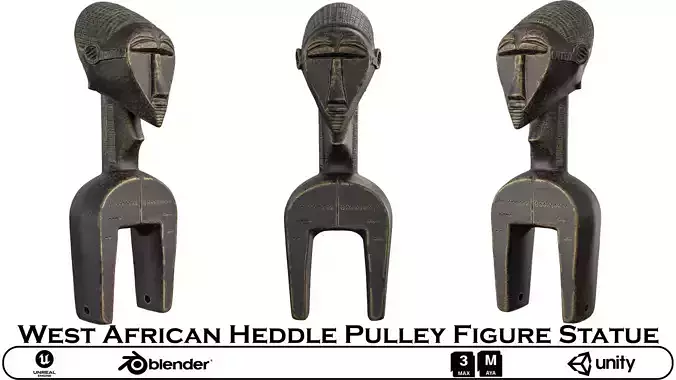 Name: West African Heddle Pulley Figure StatueType: modelFormat: 3Ds Max 2013Export: FBX, OBJRender: VRay (5.x), Corona (9)Polys: 16422Verts: 16415Matclasses: VRayMtl,_CoronaPhysicalMtlUnits: CentimetersDimension: 33.94 x 35.31 x 98.66Date: 2025.8.28This premium 3D model is a highly detailed and realistic representation of a traditional heddle pulley figure from West African art. The sculpture is rendered with a dark, aged wood or metallic texture, giving it a rich, worn appearance with subtle signs of age. The model captures the distinctive, elongated form of a figure with an abstract head, all meticulously hand-carved. This unique and captivating asset is perfect for adding a touch of cultural authenticity, history, and artistic craftsmanship to any scene. High-Quality Sculpt and Textures: The model is created from a high-resolution sculpt, capturing the bold, stylized forms and the intricate texture of the aged material. The PBR (Physically Based Rendering) textures are expertly crafted to provide a photorealistic look, with accurate maps for color, roughness, and normal detail that highlight every carving mark.