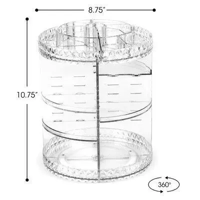 • Is your makeup collection spinning out of control? Take a turn for the better with this 360° Askins Rotating Cosmetic Organizer. This tabletop carousel features a Lazy Susan swivel base with a 360° rotation so you can quickly access makeup, perfume, grooming tools and more.