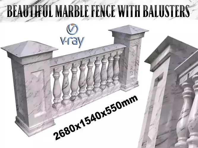 Greetings ,let me introduce you to a wonderful white marble fence balasins and columns, the 3D models was created on the basis of real drawings and in real dimensions, and in real units of measurement, 2680x1240x550 mm. The model was created in the program 3ds Max 2019, retained in the 2016 version. Renders made in a studio environment v-ray (studio environment not included - used hdri). Texture and material are included. Textures for white marble fence balasins and columns is unique, created of me and tiling well, the model has 1 unique texture. Also left two splines for the top and bottom rail.