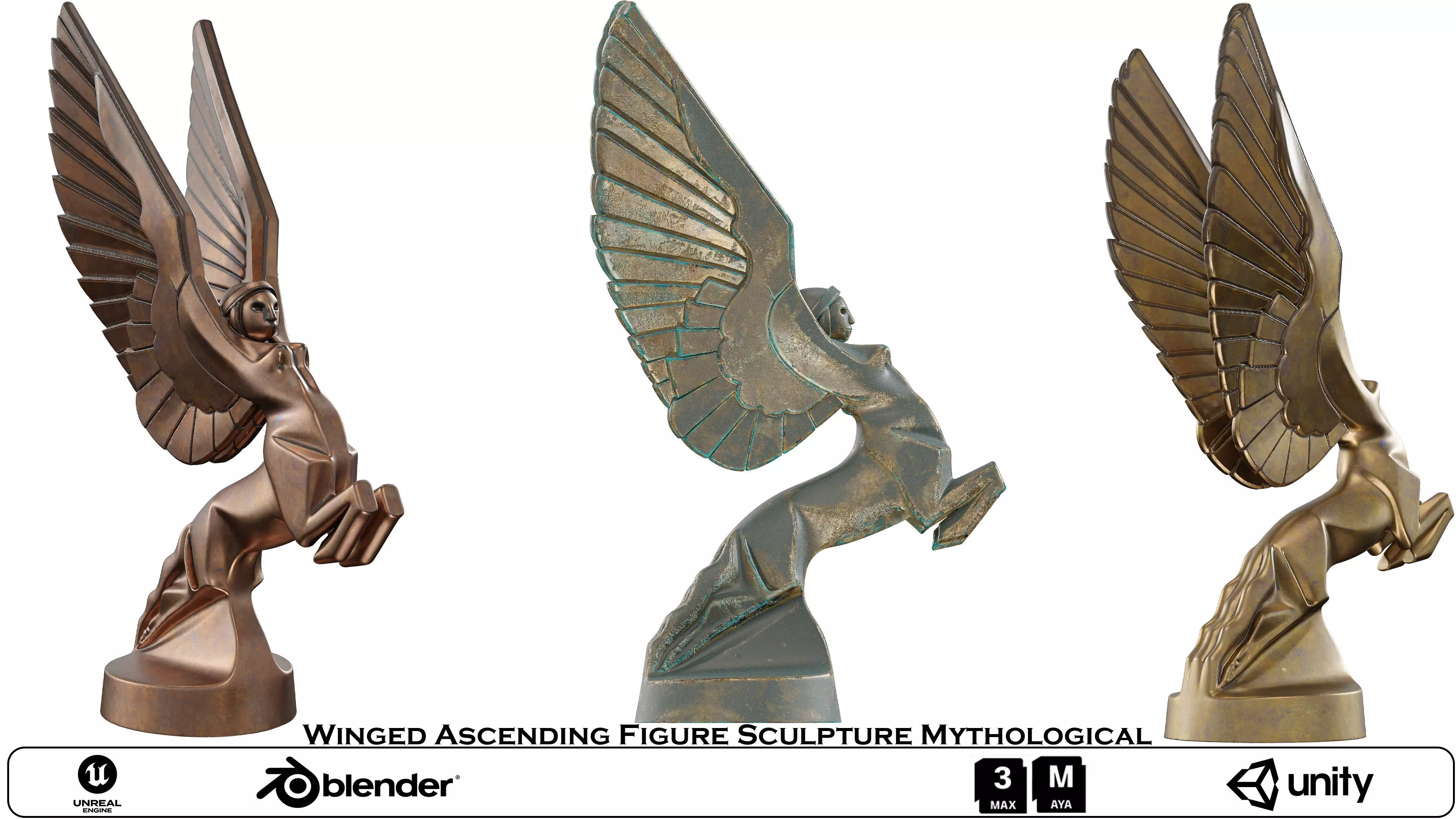 Name: Winged Ascending Figure Sculpture MythologicalType: modelFormat: 3Ds Max 2013Export: FBX, OBJRender: VRay (5.x), Corona (6)Polys: 101020Verts: 50956Matclasses: VRayMtl,CoronaMtlUnits: CentimetersDimension: 69.3 x 30.25 x 105.03Date: 2025.11.13
