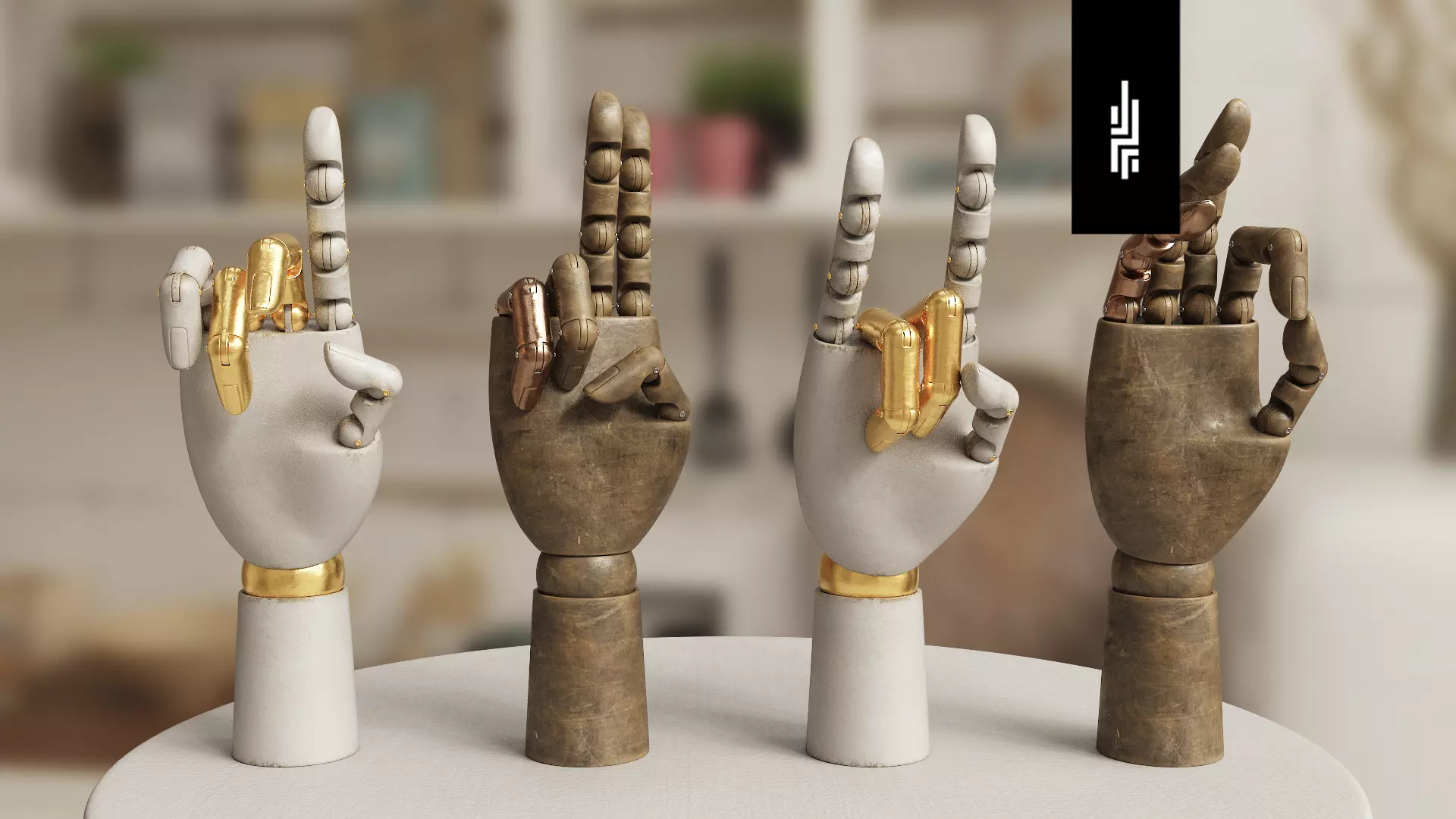 Mannequin hand to decorate interior spaces. This pack features four pose variants and two material variants that can be used on any of the four models. Ideal for offices and classroom.
