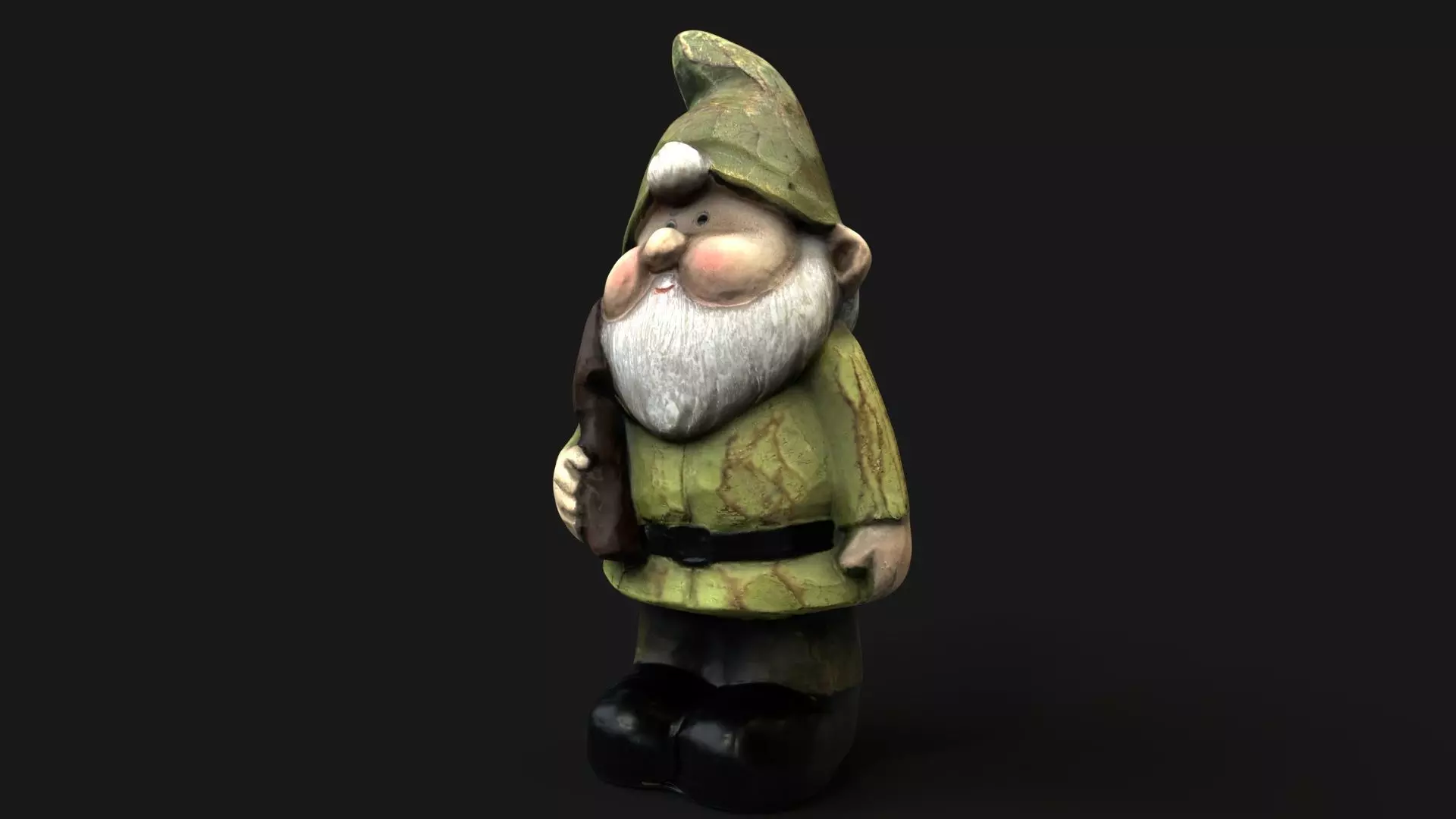 Sculpture of a wooden dwarf. Low poly model made based on a 3D scan.