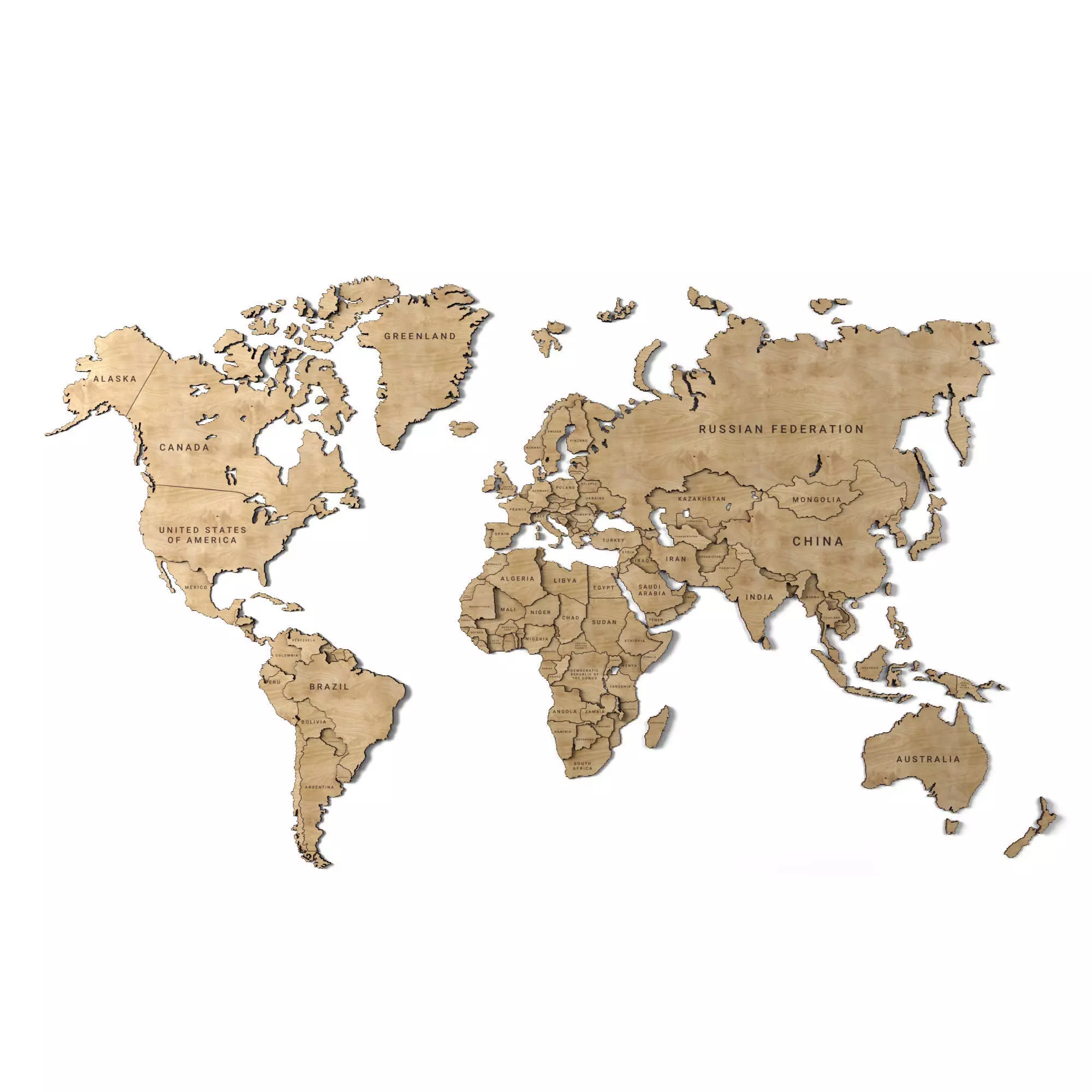 Wooden panel - world map 3D model