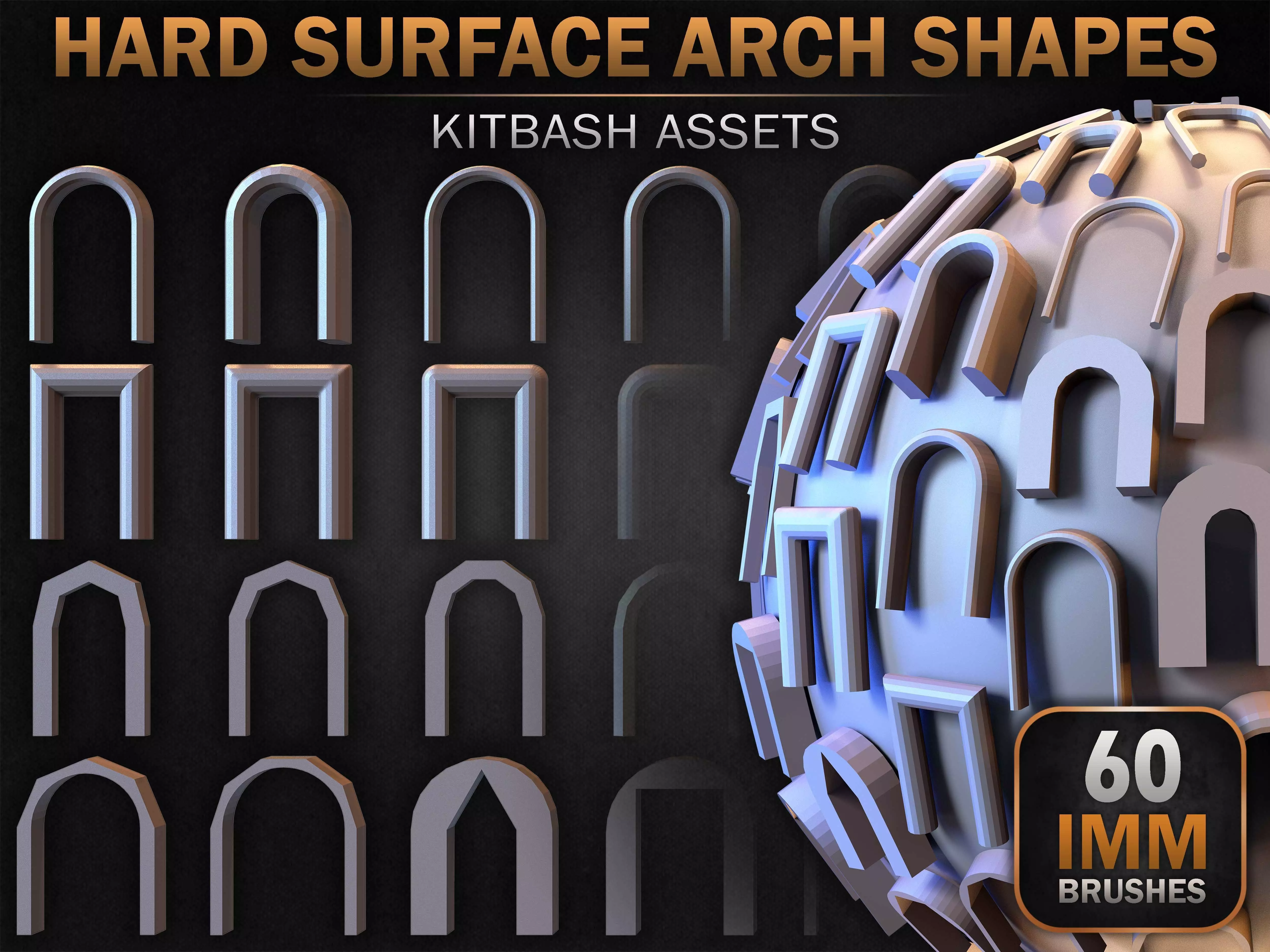 You are strongly encouraged to modify the meshes and build new designs from them. These arch elements are intended as modular building blocks that can be reshaped, merged, duplicated, and transformed into architectural elements, mechanical structures, furniture components, environment assets, or entirely new hard surface designs.