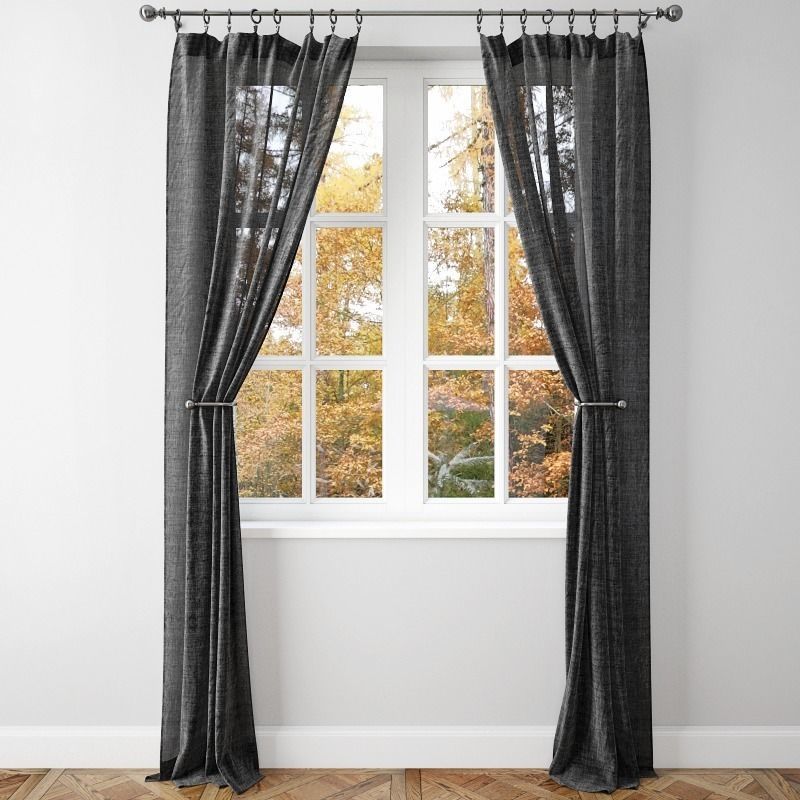 BELGIAN FLAX LINEN SHEER DRAPE 2-Pottery Barn 3D model