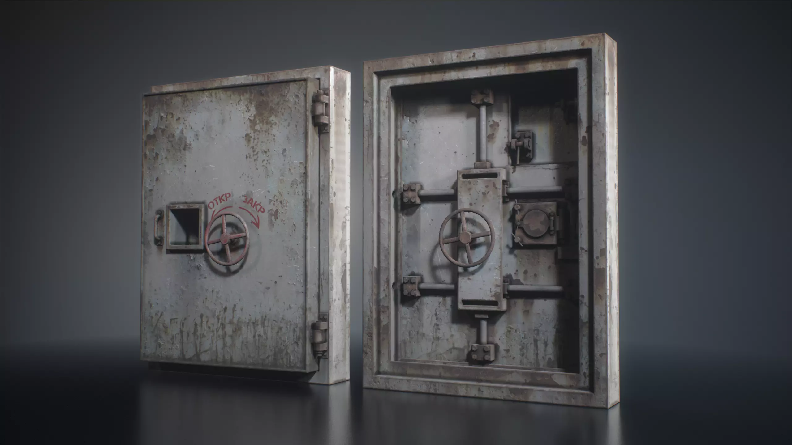 Pbr lowpoly game ready bunker door in photorealistic style with color selection. The 3D model is fully ready for use in games.