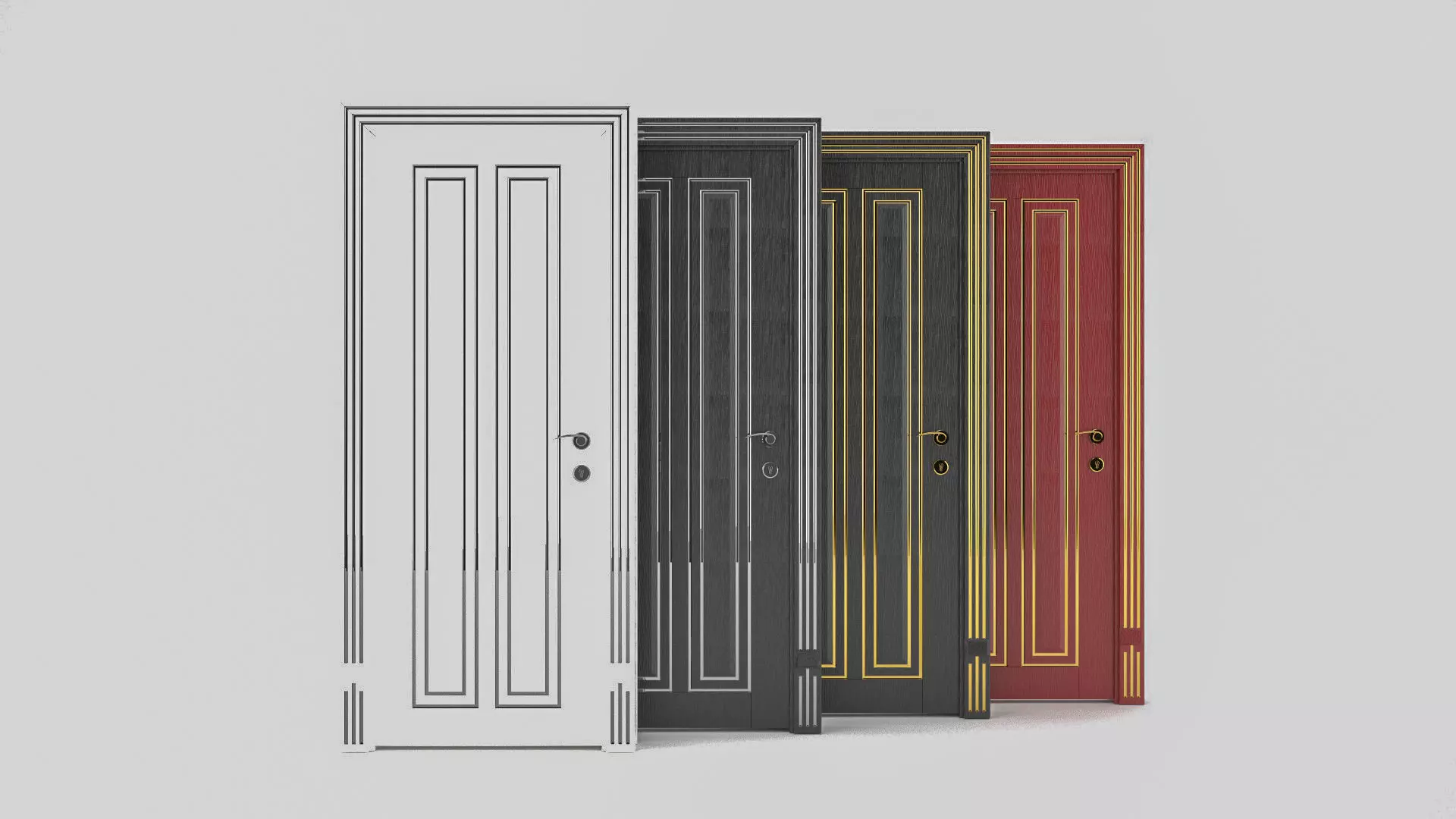 Classic door 01 High detailed model created by Untitled.C4D Ready to render at Cinema 4D with VRAY. It was rendered at Cinema 4D R21 with Vray 3.7Scale: Centimeter 110cm x 220cm x 16.4cmNo hidden objectsModel, textures and materials have unique logical namesConfiguration of lights and cameras not includedPolygons: 51.008Vertices: 25.776