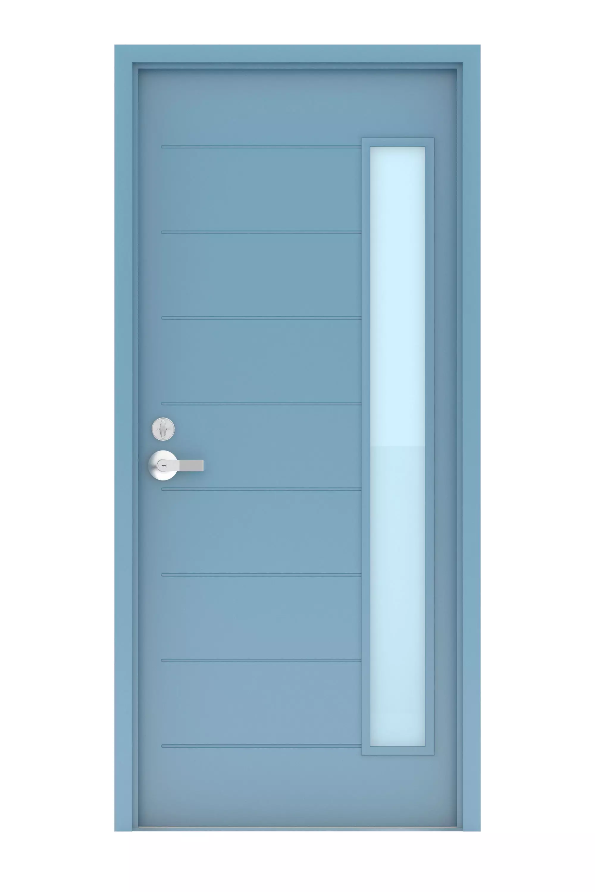 High Detail 3d Model of an Aluminum Door with Glass lite and Detailing- Hollow Metal Door Frame-Door Color can easily be changed to any color, reflection on door may have to be adjusted based on scene, glass may have to be adjusted depending on scene