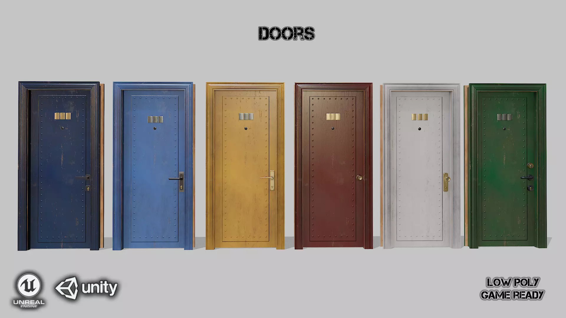 • 1 variants door of the Low poly model. And 14 types of door hardware.