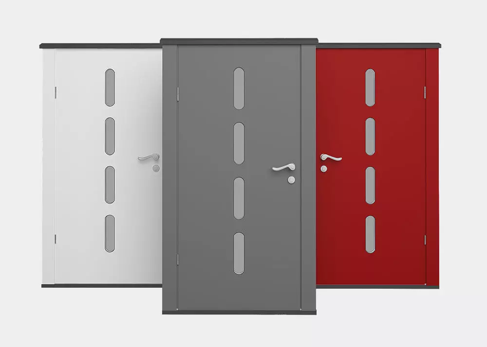 Exterior door 04 - high quality 3d model of Swedoor exterior door in 3 colours with handle, lock, lockplate, frame, doorstep, molding with nail holes, metal fittings,hinges, metal and plast window gadget, and gadget around the door all higly detailed with all maps included.